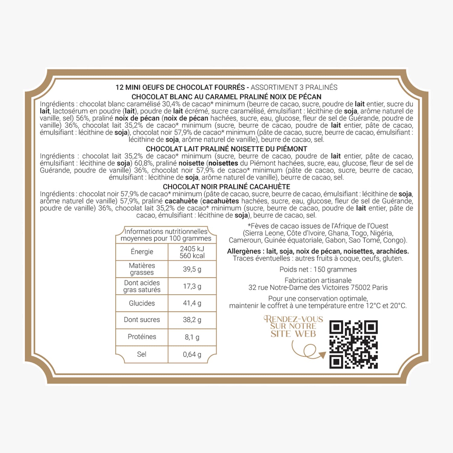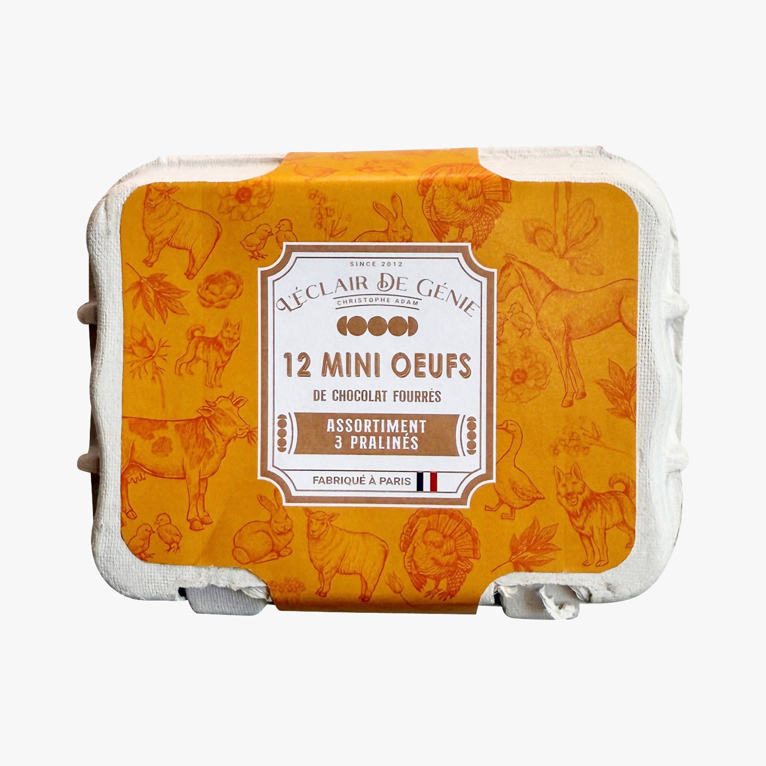 12 mini œufs de chocolat fourrés au chocolat lait, praliné, noisettes du Pièmont