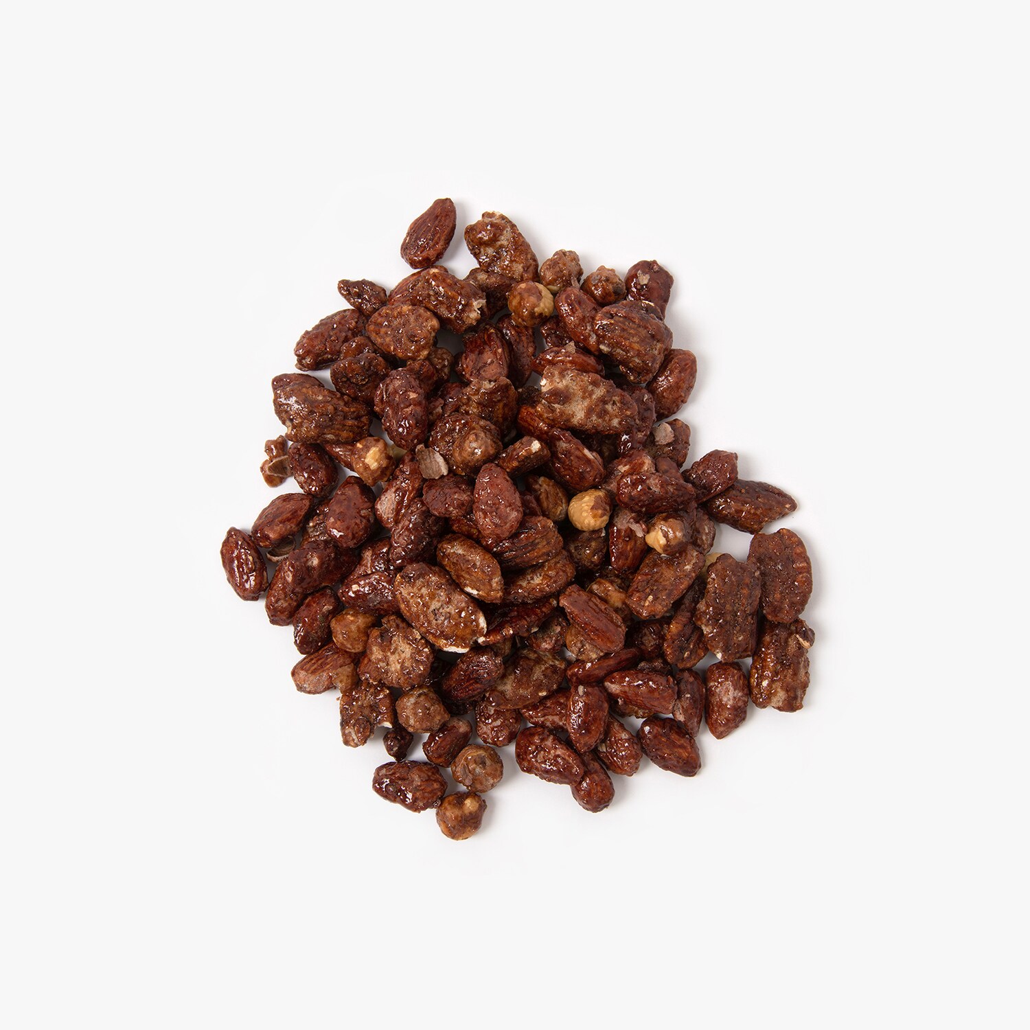Mélange de noisettes, amandes et noix de pécan caramélisées