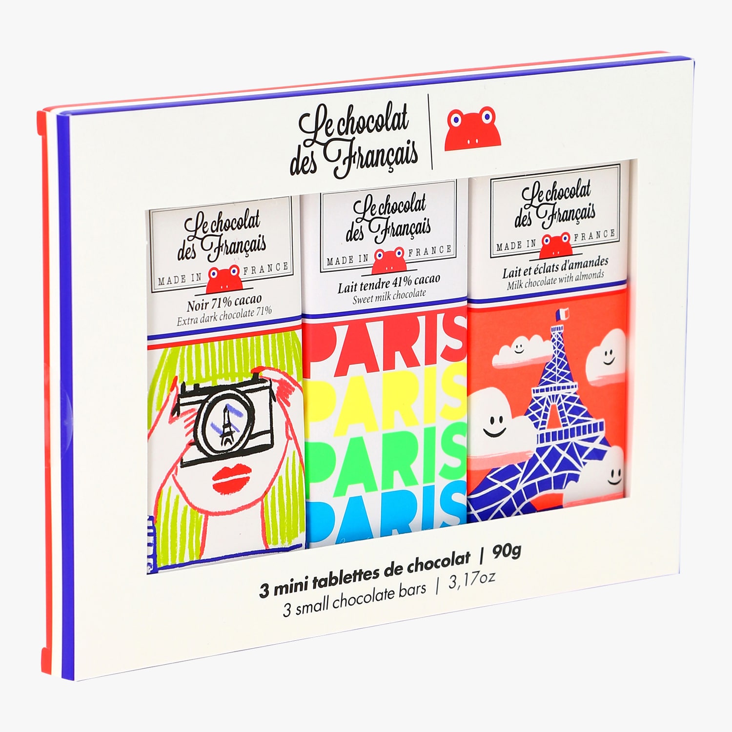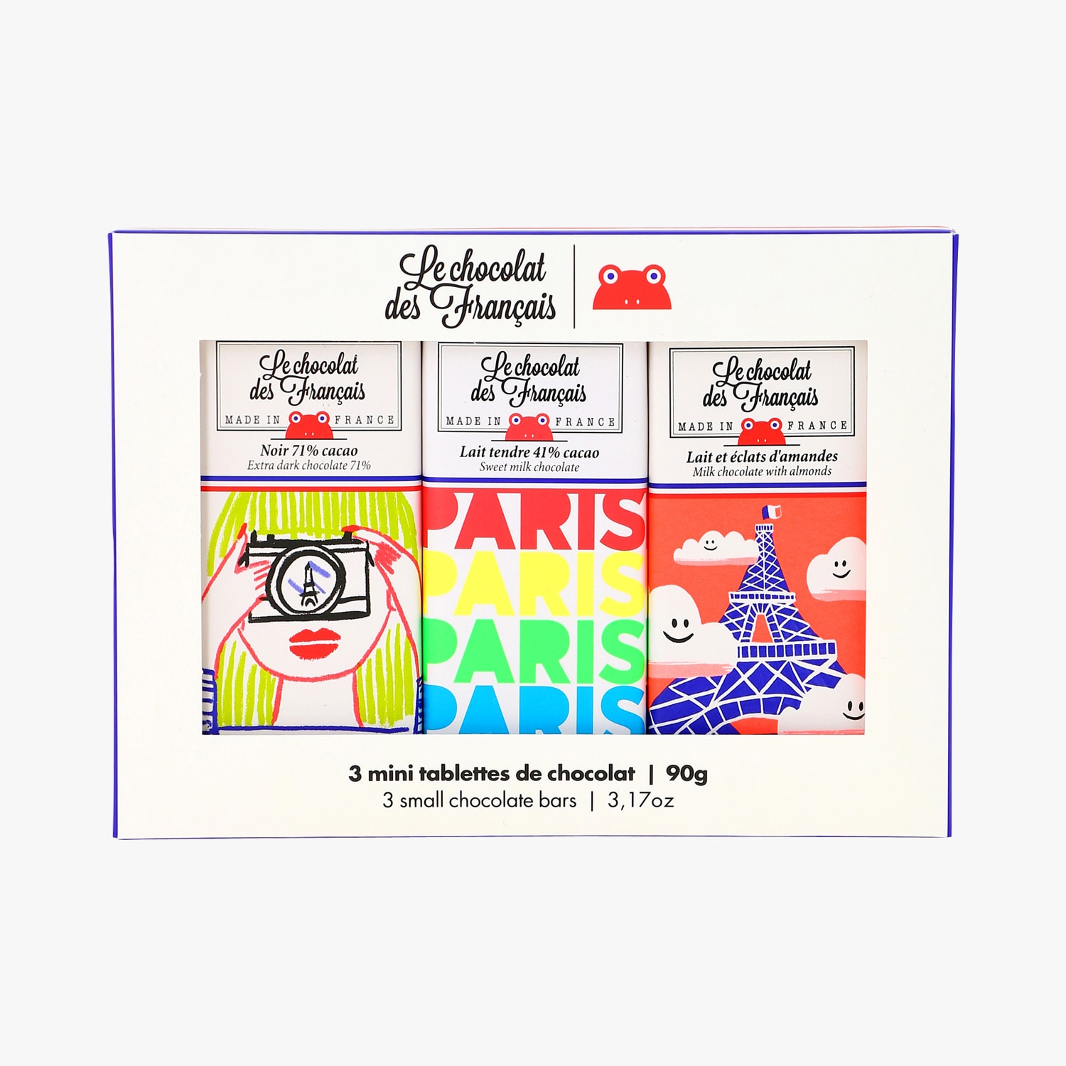 Coffret mini tablettes de chocolat noir, lait tendre et lait et éclats d'amandes Le Chocolat des Français