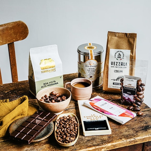 - Doux et aromatique, l’arabica peut être dégusté avec des enrobées de chocolat telles que les amandes au chocolat au lait et au chocolat noir de notre Collection, pour une touche plus agréable. Une truffe au chocolat ou des rochers pralinés accompagneront à merveille une tasse de café noir et intense, tel que le café en grain Boa Vista Alta Mogiana de Terres de Café. Chaque tasse révèle des saveurs riches de truffe au chocolat, de praliné de noix et une touche d’abricot sec. Son corps rond et lisse en fait le café idéal pour les amateurs d’expresso.