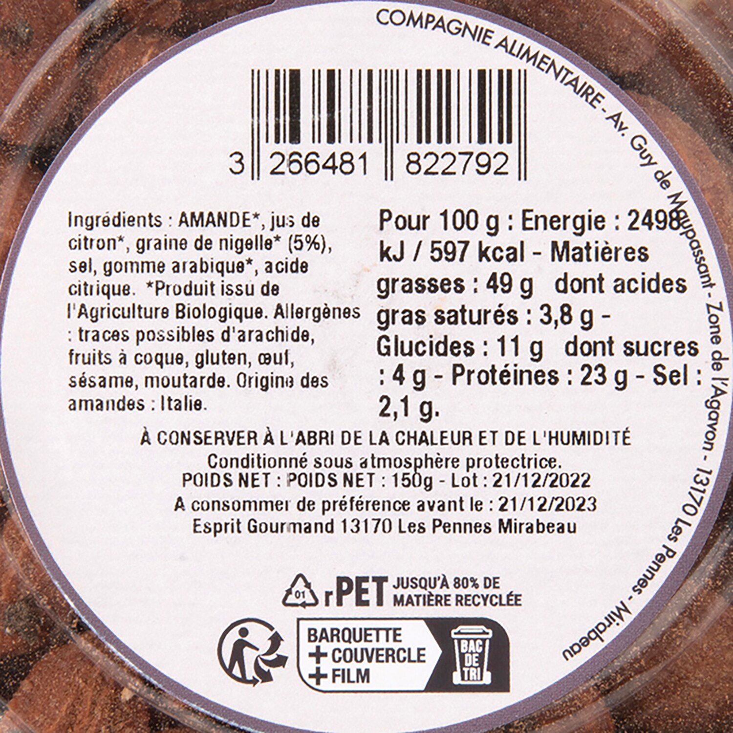 Amande salé, citron et graine de nigelle bio Maison Naja