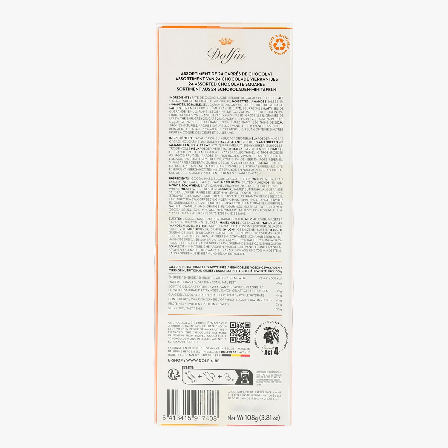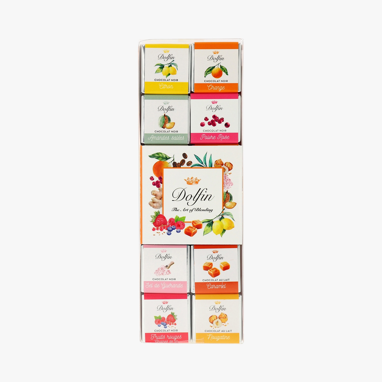 Assortiment de 24 carrés chocolats, 12 saveurs