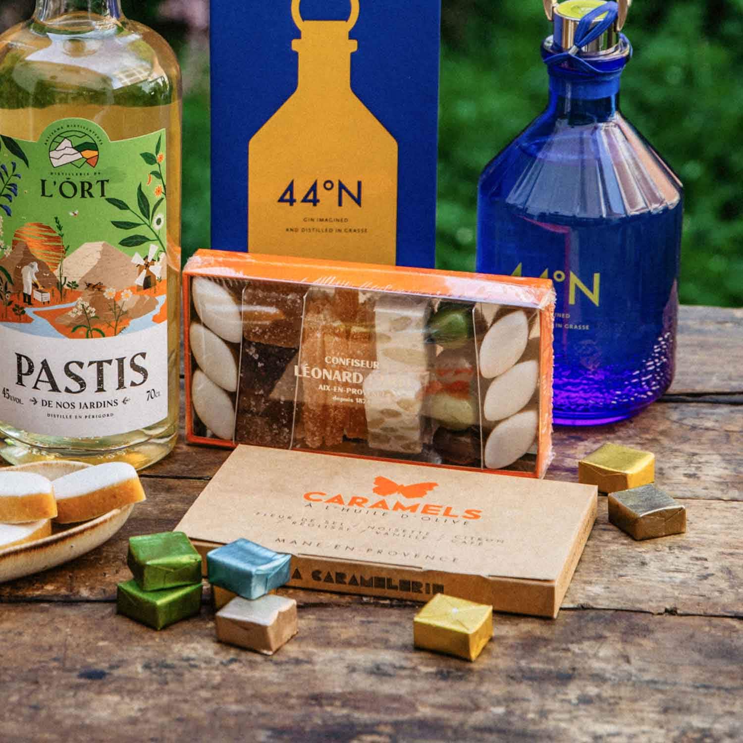 Assortiment de calisson, orangette au sucre, nougat blanc, pâte de fruit, promenade gourmande