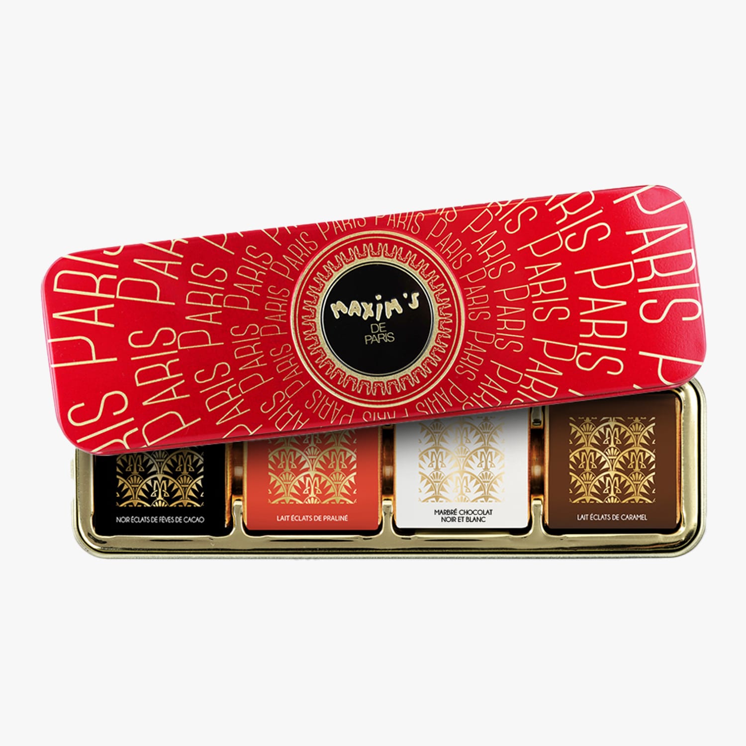 Assortiment de 8 carrés chocolat - chocolat noir, lait, caramel et marbré Maxim’s de Paris