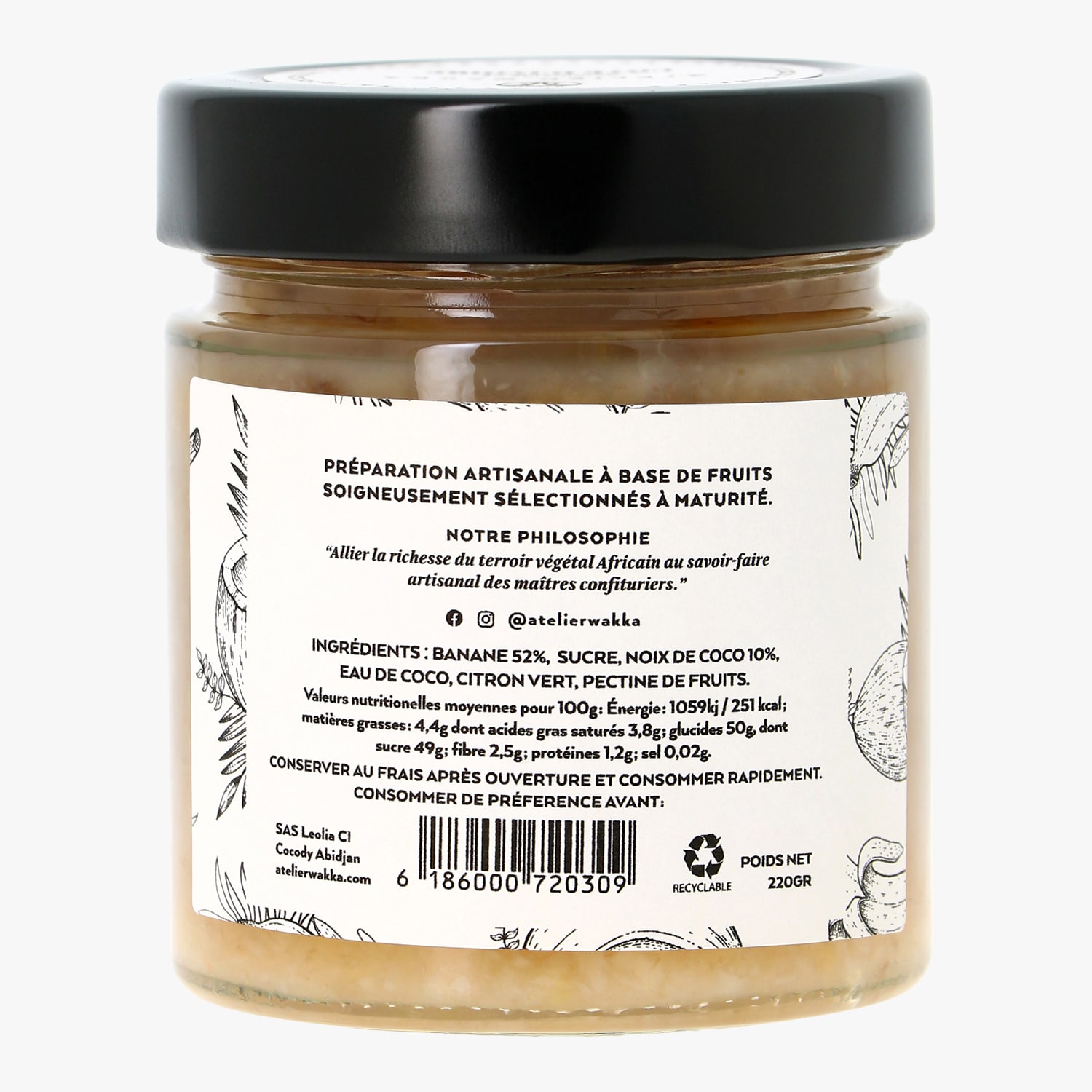 Préparation à base de fruits banane, noix de coco Atelier Wakka