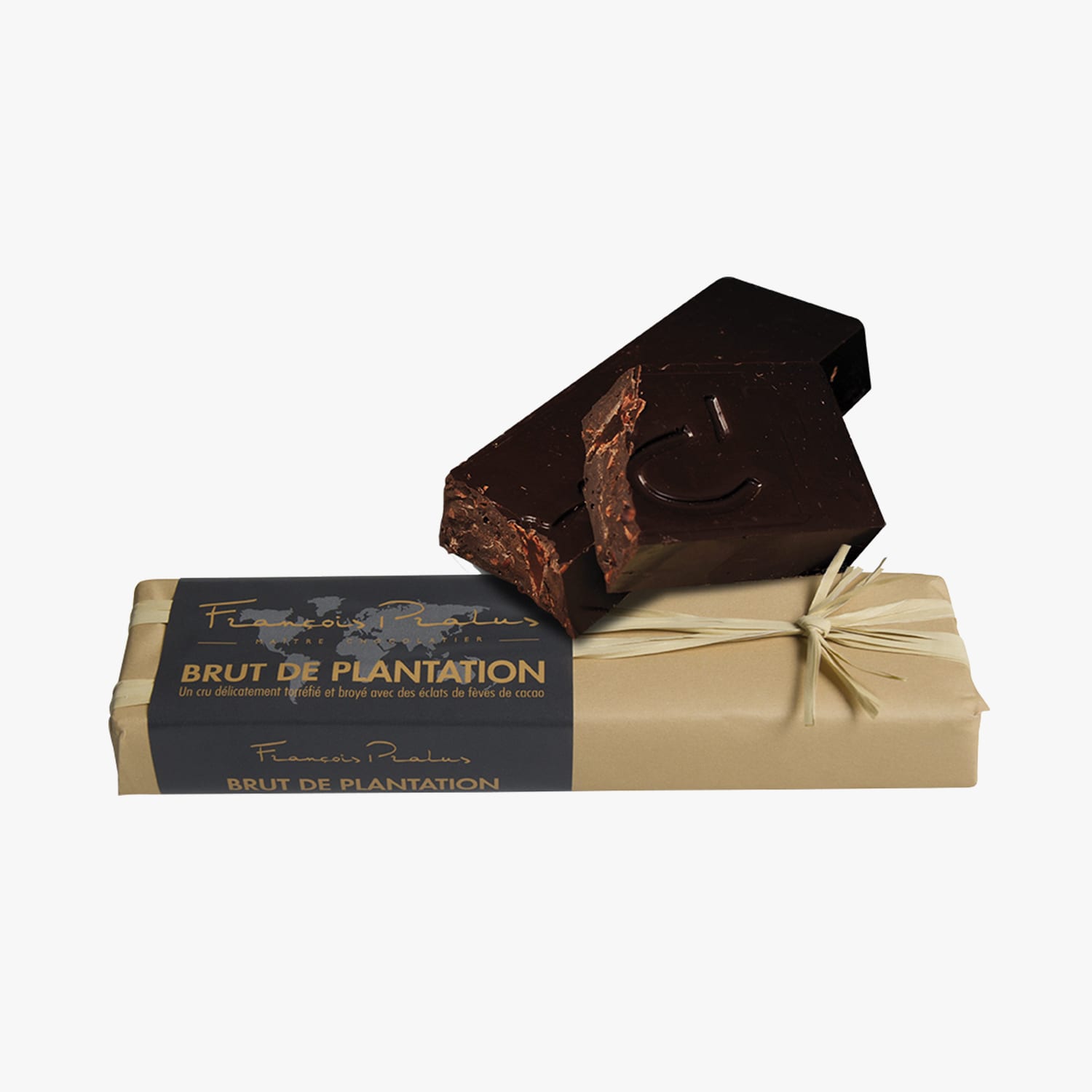 Barre de chocolat torréfié et broyé avec des éclats de fèves de cacao