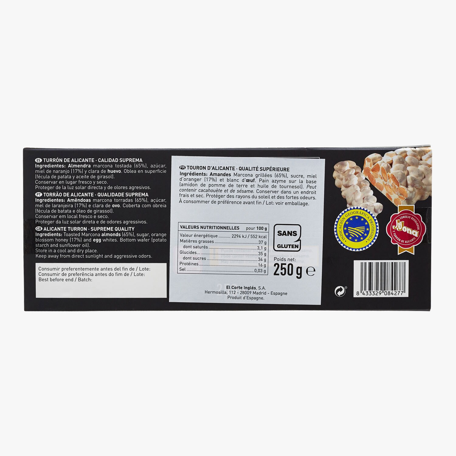 Avec ses amandes marcona délicatement torréfiées et son miel de fleur d’oranger, ce touron d’Alicante offre une texture croustillante et un goût intense. Une explosion de saveurs pour les amateurs de ce nougat traditionnel.