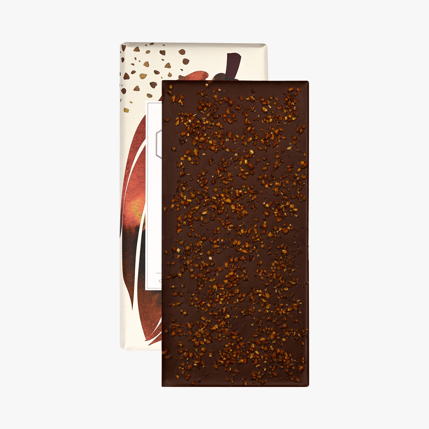 Tablette de chocolat noir 70 % de cacao et graine de sarrasin torréfiées