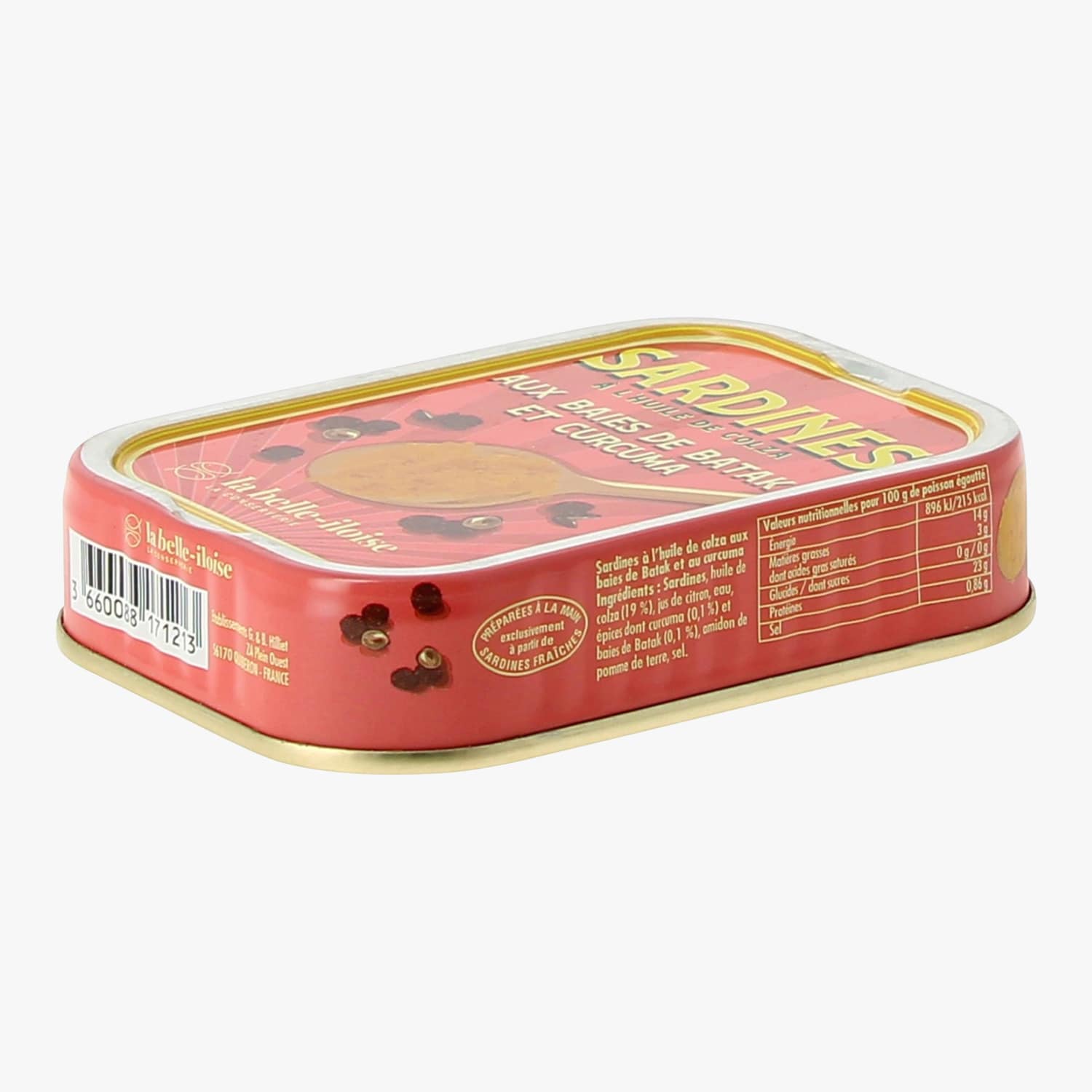 Boîte de sardines à l’huile de colza, aux baies de Batak et au curcuma Conserverie la Belle-Iloise