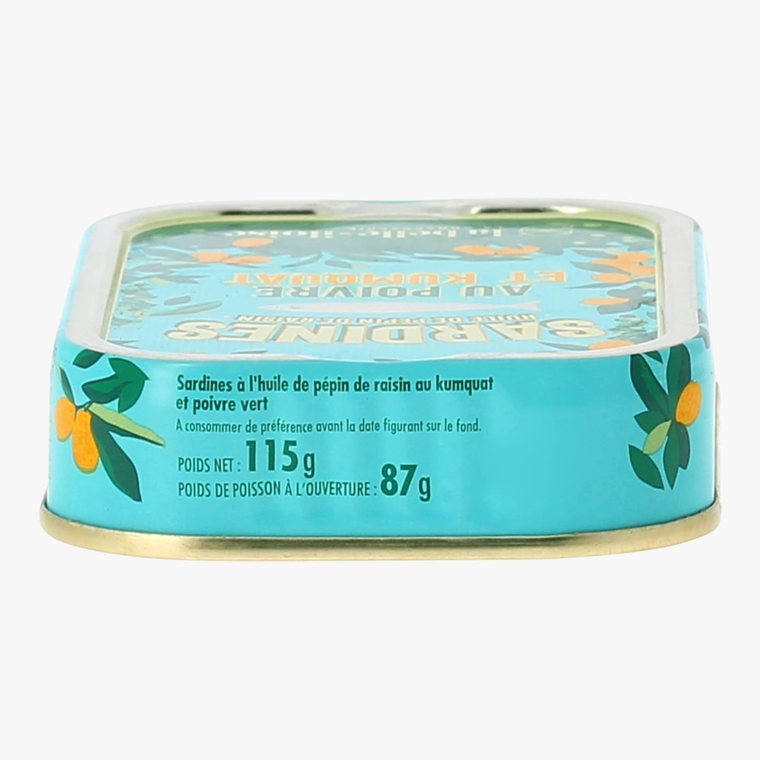 Boîte de sardines à l’huile de pépins de raisin, au poivre vert et au kumquat Conserverie la Belle-Iloise