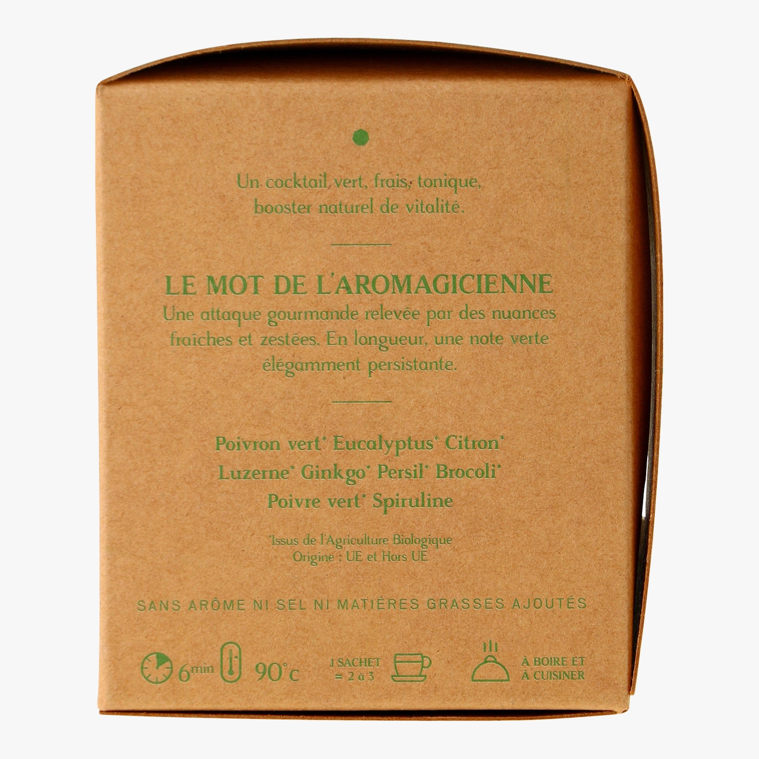 12 sachets bio parfumés poivron vert, eucalyptus, citron, luzerne, ginkgo, persil, brocoli, poivre vert et spiruline