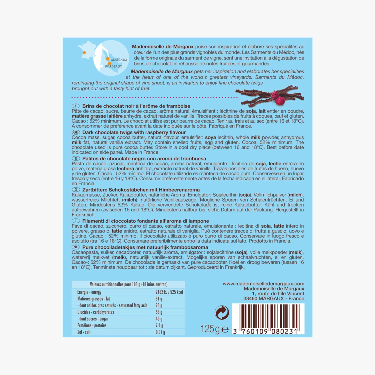 Brins de chocolat noir à l'arôme de framboise Mademoiselle de Margaux