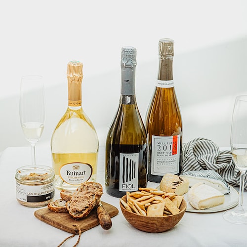 Incontournable de l’apéritif, le Champagne se démarque par la diversité de ses saveurs. Un champagne brut nature ou extra-brut, contenant une faible teneur en sucre, permet de réaliser de réaliser des accords aux accents maritimes. En effet, ce type de vins peu sucrés se marient à merveille avec des aliments iodés comme du saumon fumé, des fruits de mer et crustacés, ainsi que du poisson cru. Pour accompagner du foie gras, privilégiez un Champagne Blancs de blancs tel que le Champagne Jacques Lassaigne, Les Vignes de Montgueux, Blanc de blancs ou l'incontournable Ruinart Blanc de Blancs. Pour chacune de vos associations, nos experts vous recommandent d’éviter les aliments salés ou épicés, afin de ne pas effacer les arômes et saveurs du vin.