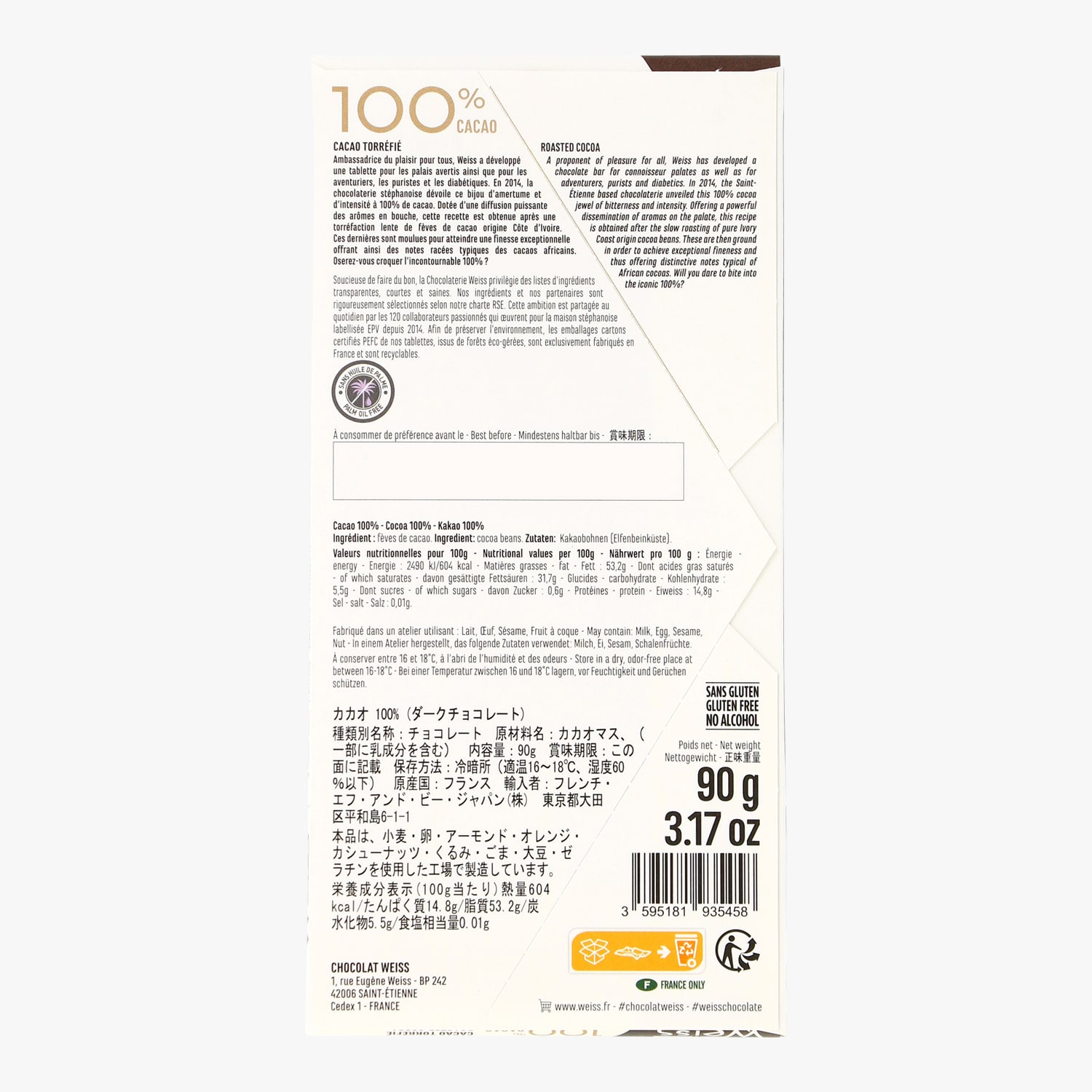 Cacao torréfié 100% cacao- Fèves de cacao : origine Côte d'Ivoire