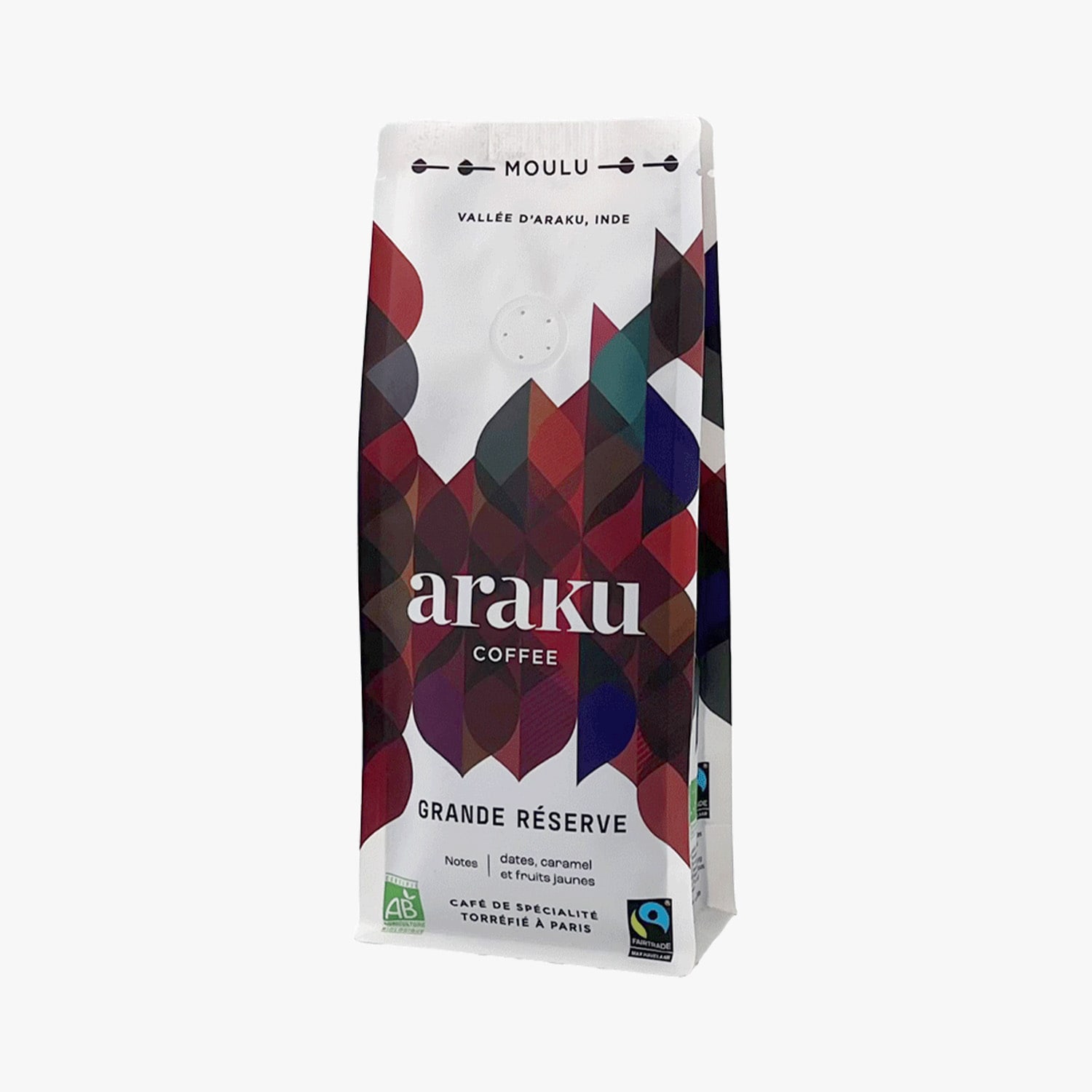 Café moulu 100 % arabica bio grande réserve, Origine Inde Araku Coffee