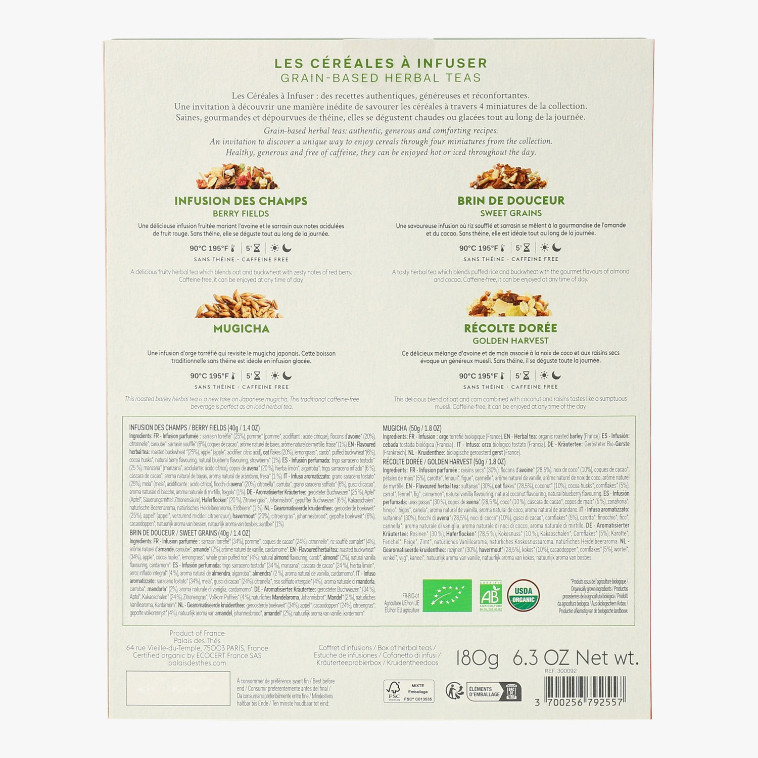 Assortiment de céréales à infuser Infusion des champs, Brin de douceur, Mugicha, Récolte dorée