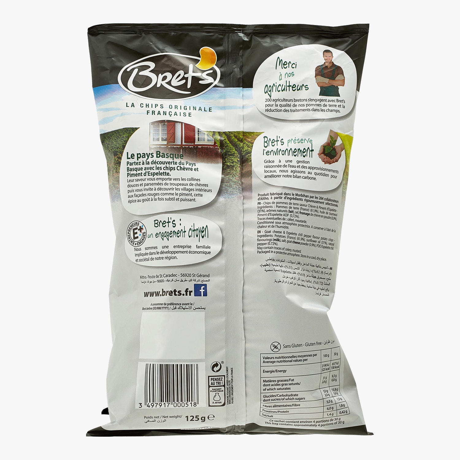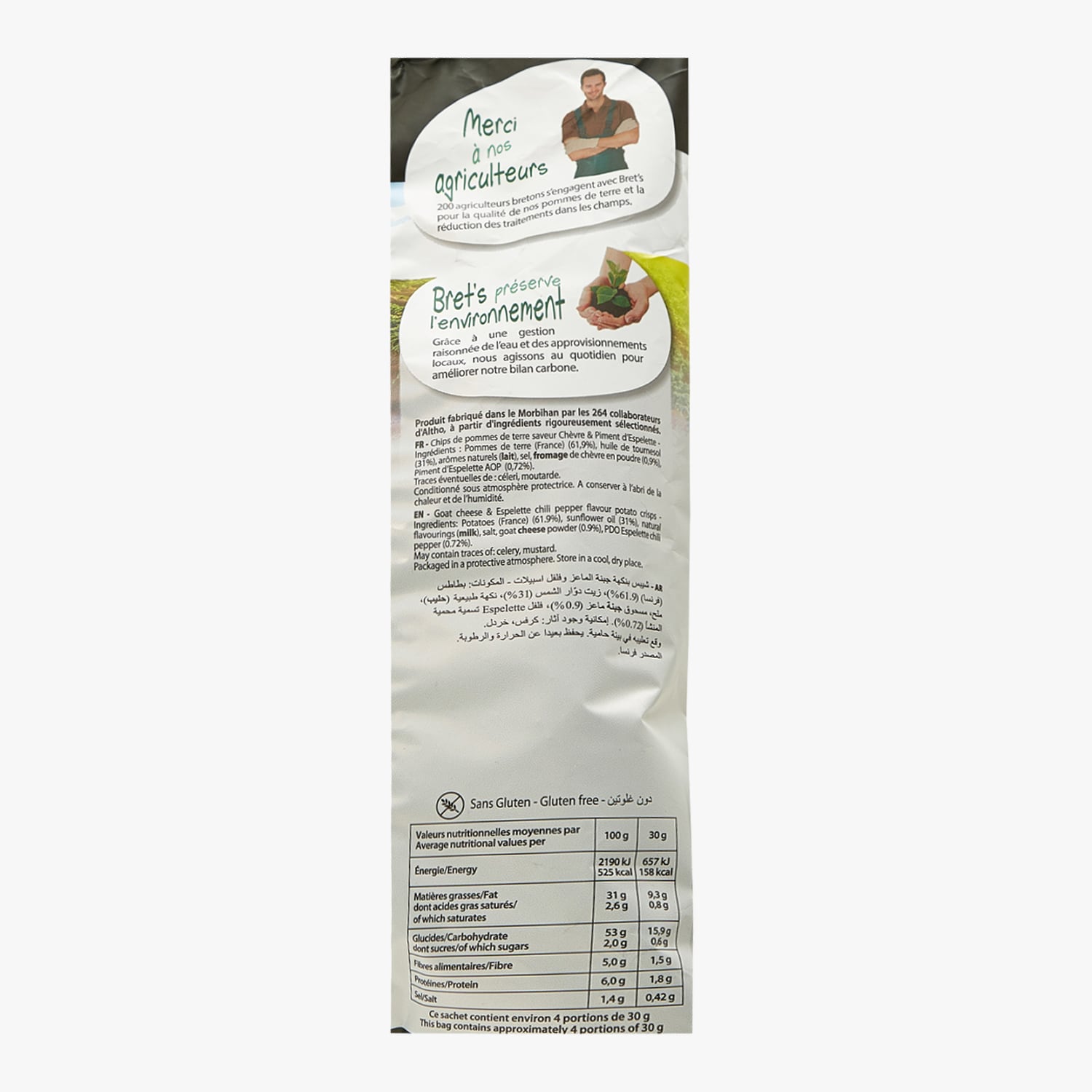 Chips de pommes de terre saveur chèvre & piment d'Espelette Bret's