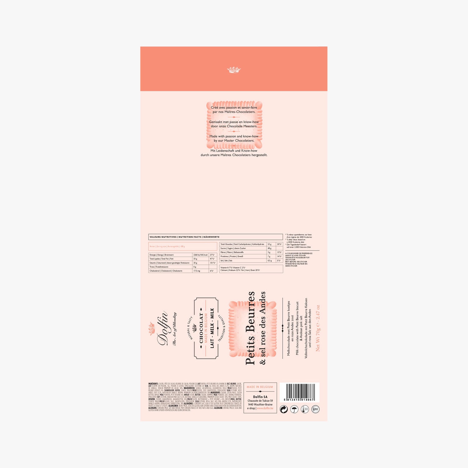 Chocolat au lait aux Petits Beurres & sel rose des Andes Dolfin