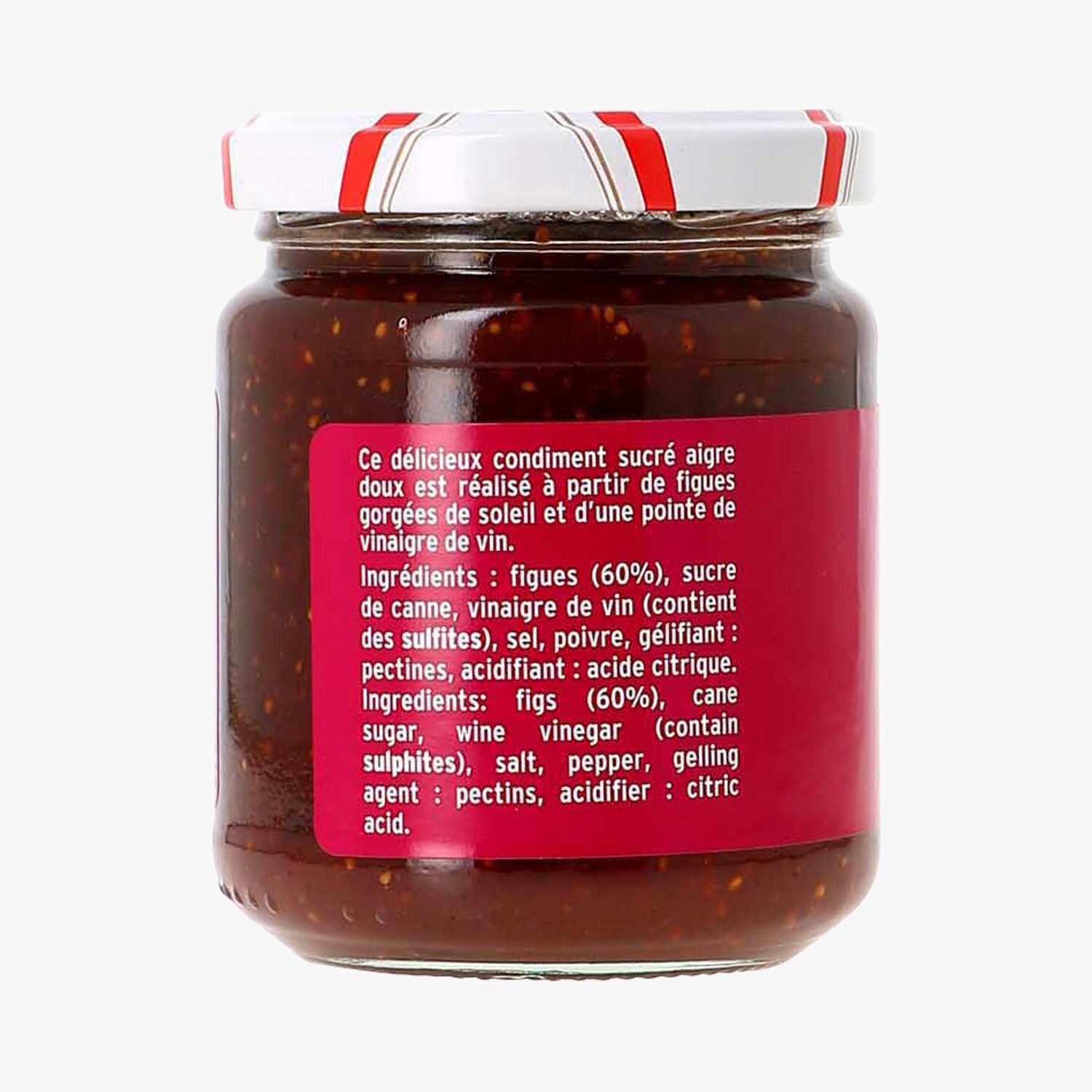 Ce délicieux chutney est fait à partir de savoureuses figues violettes cueillies à maturité et de vinaigre de cidre de qualité. Il est idéal pour accompagner le foie gras en terrine ou poêlé, ou pour relever le goût des viandes, poissons ou encore des fromages de chèvre.