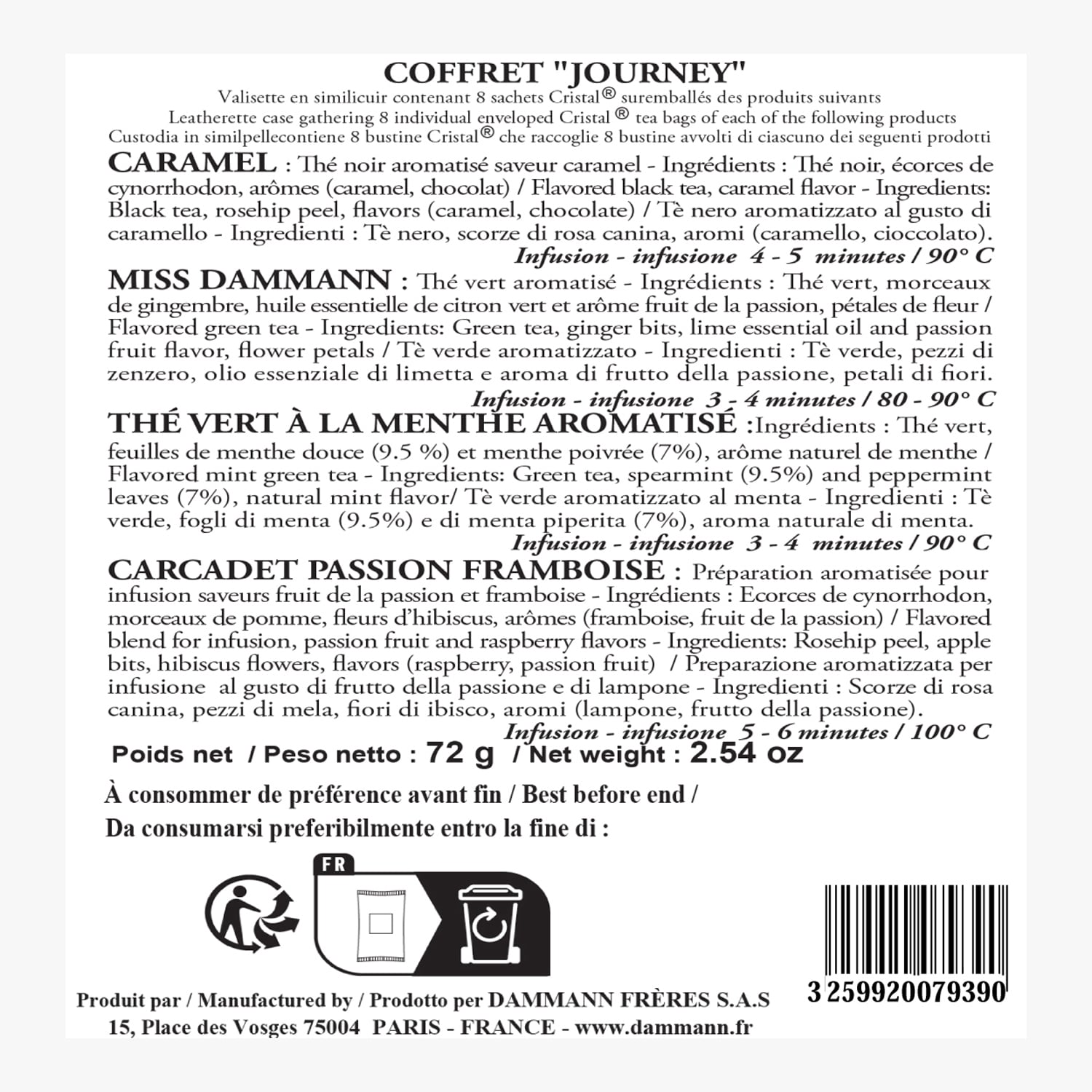 Coffret en similicuir contenant 32 sachets de thé vert aromatisé, thé noir aromatisé et infusion aux fruits