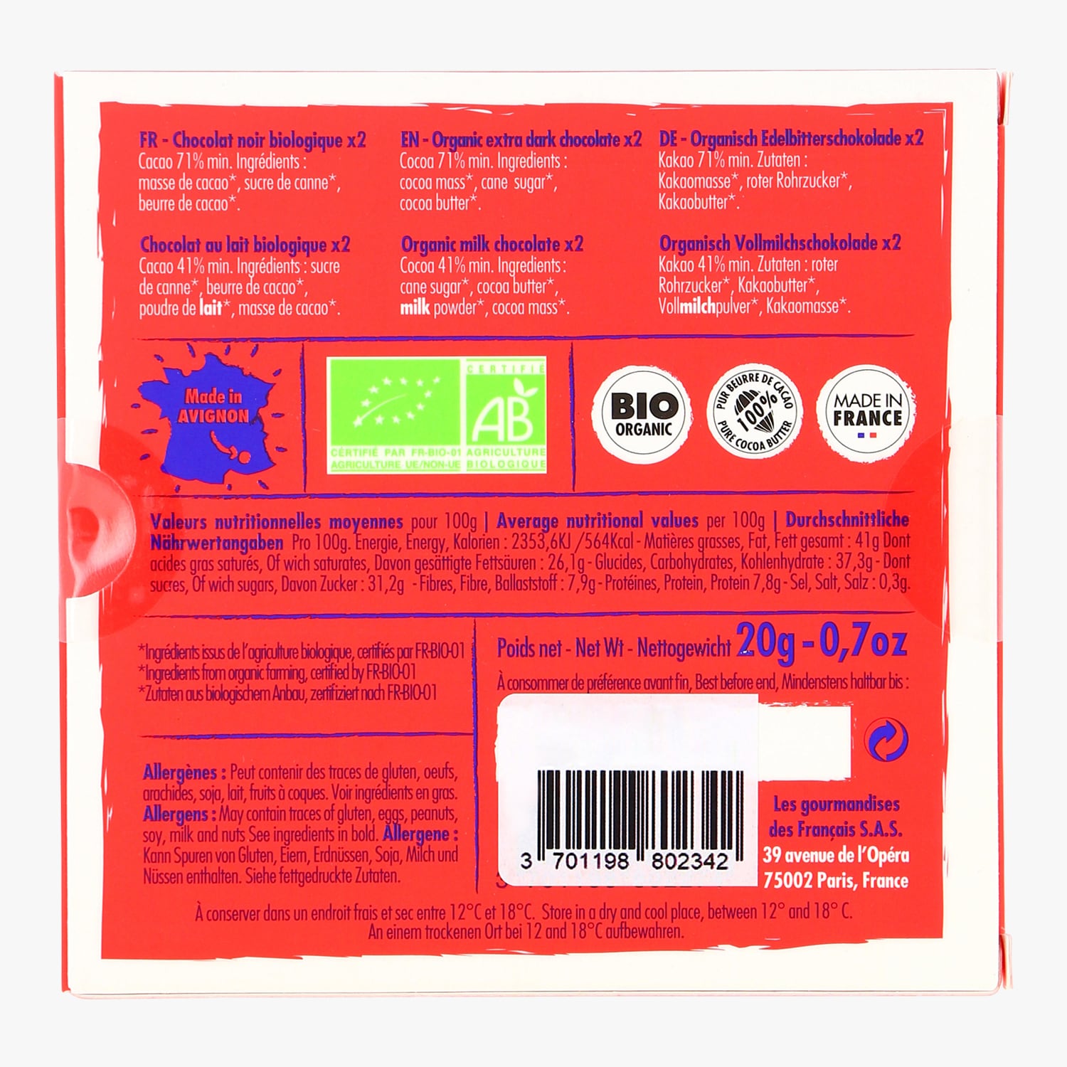 Coffret 4 carrés de chocolat lait & noir 71 %
