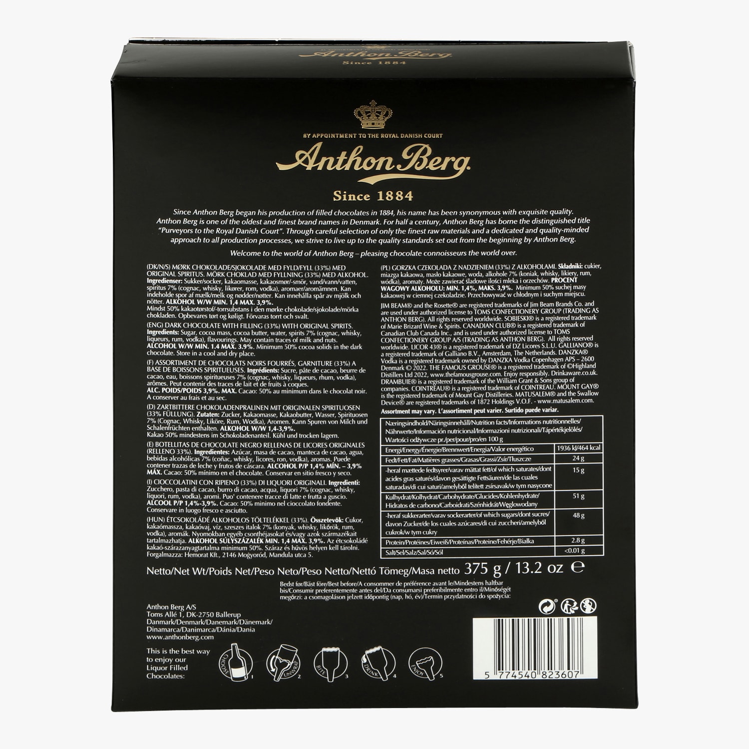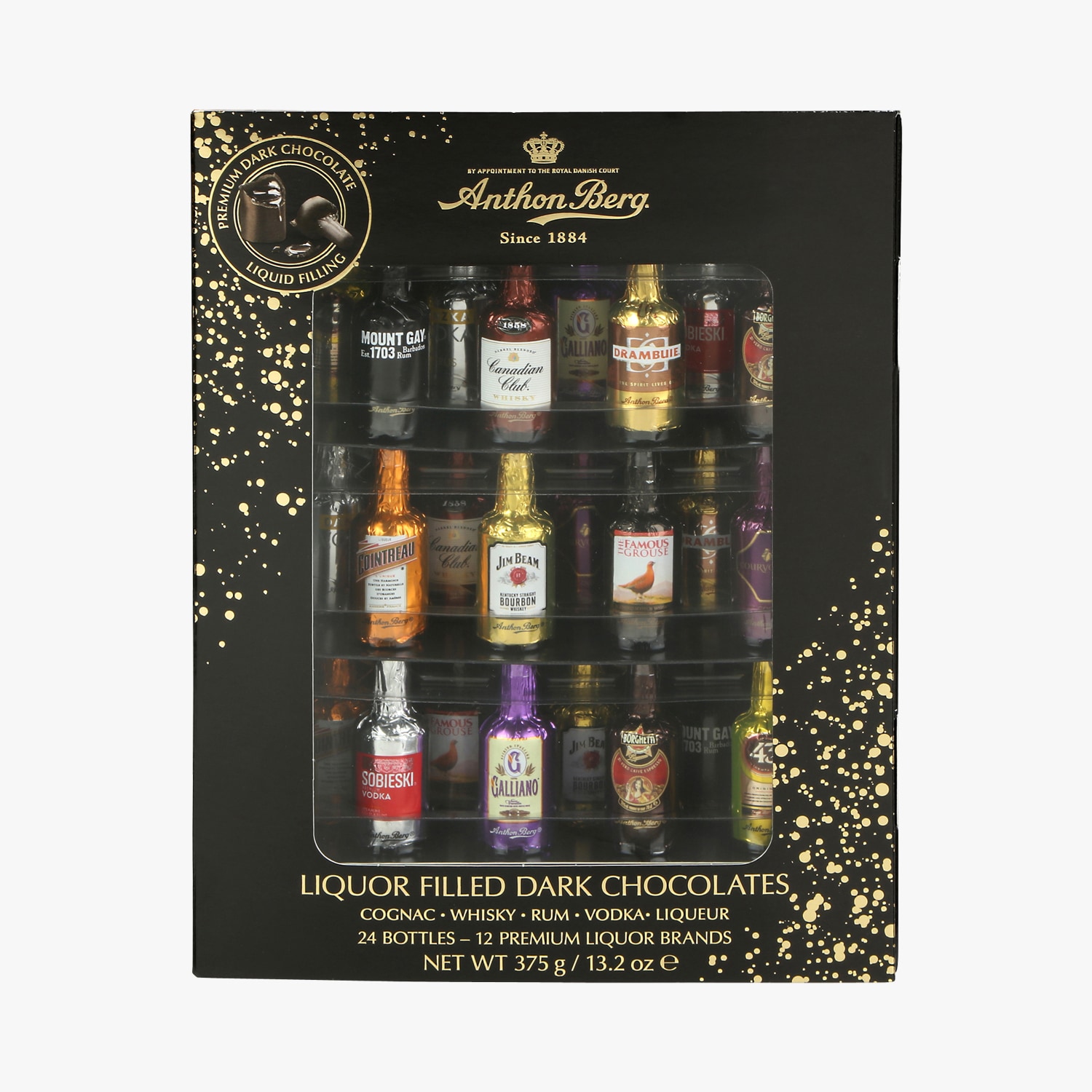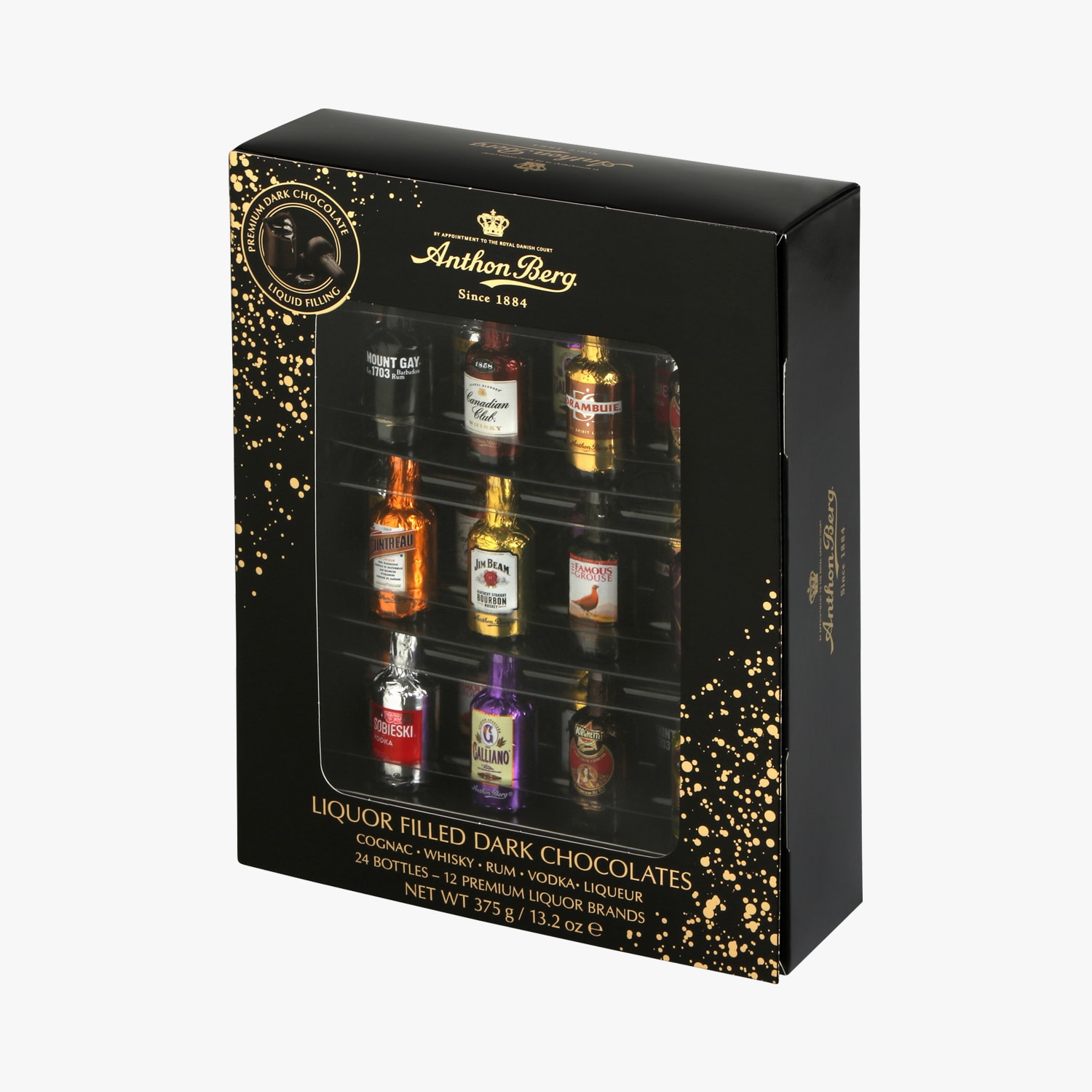 Assortiment de 24 chocolats noirs fourrés aux boissons spiritueuses