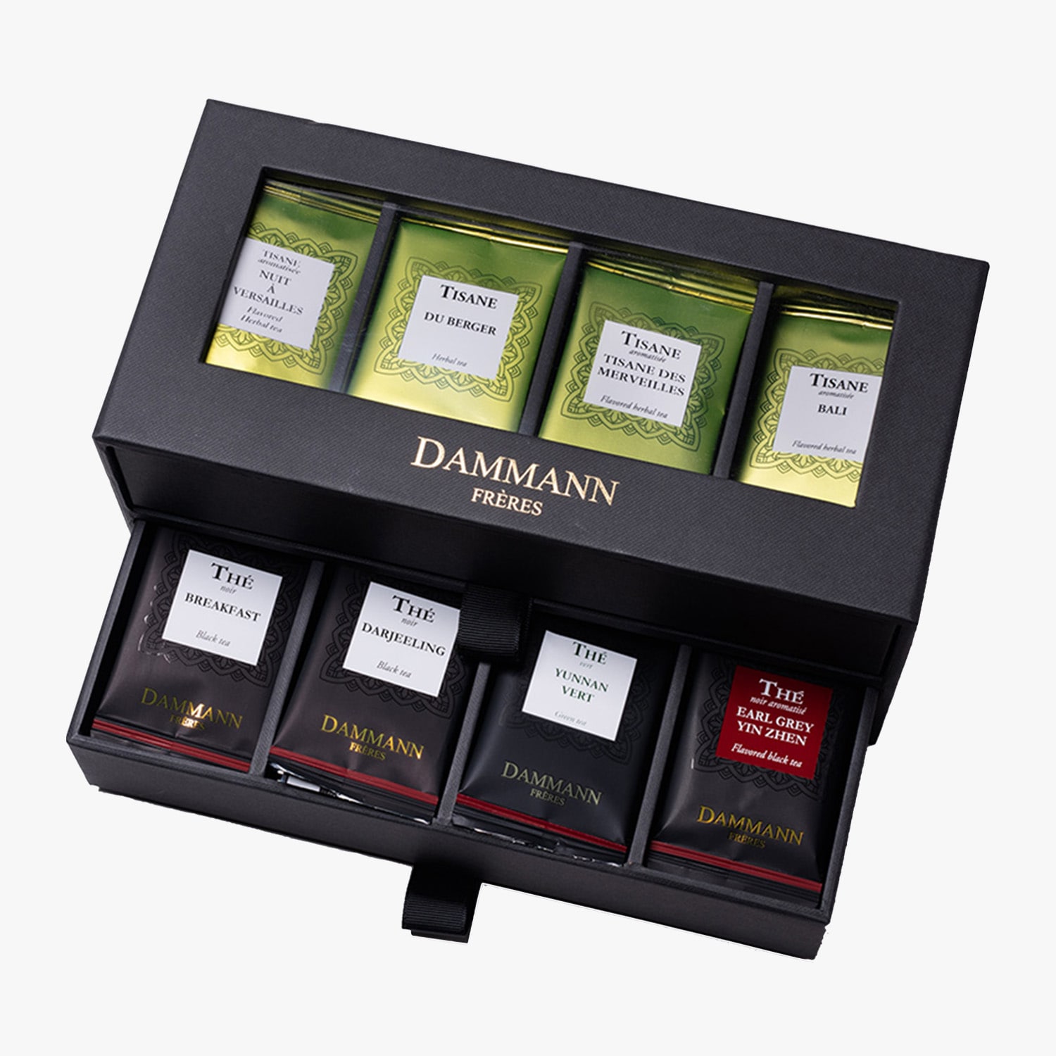 Assortiment de 4 thés et 4 tisanes conditionnés en sachets individuellement enveloppés (56 sachets Cristal®)