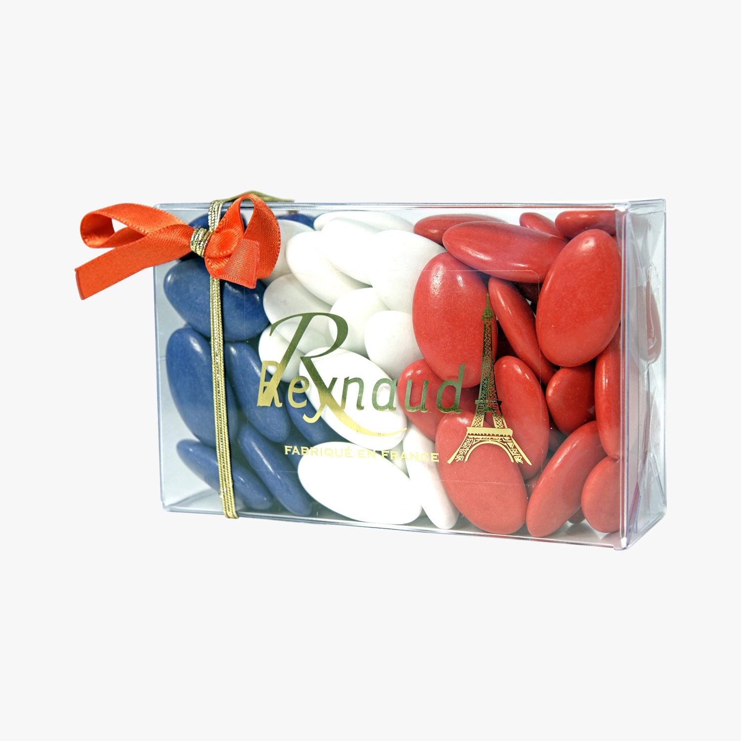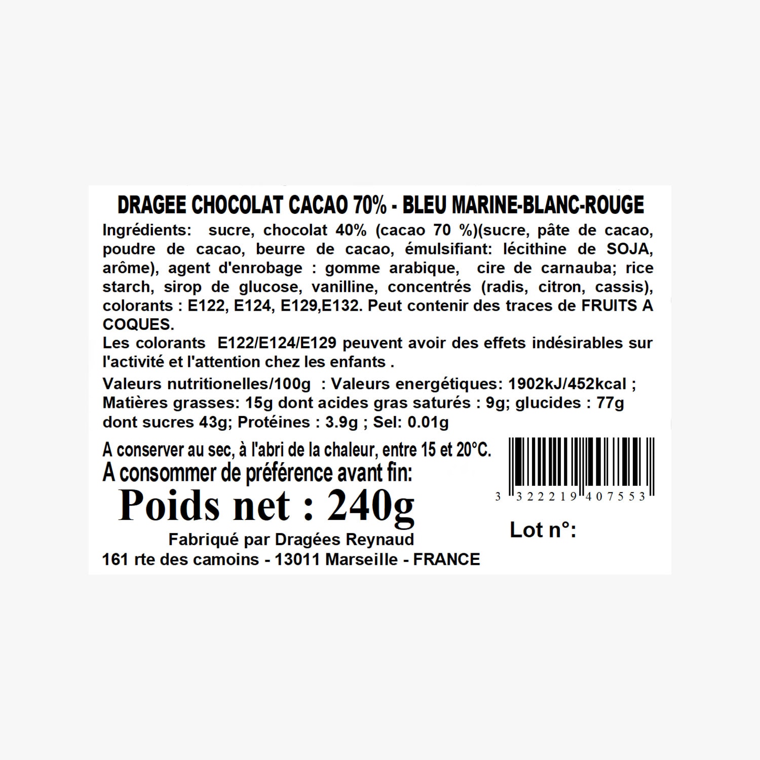 Coffret de dragées au chocolat 70 % - Bleu, blanc, rouge