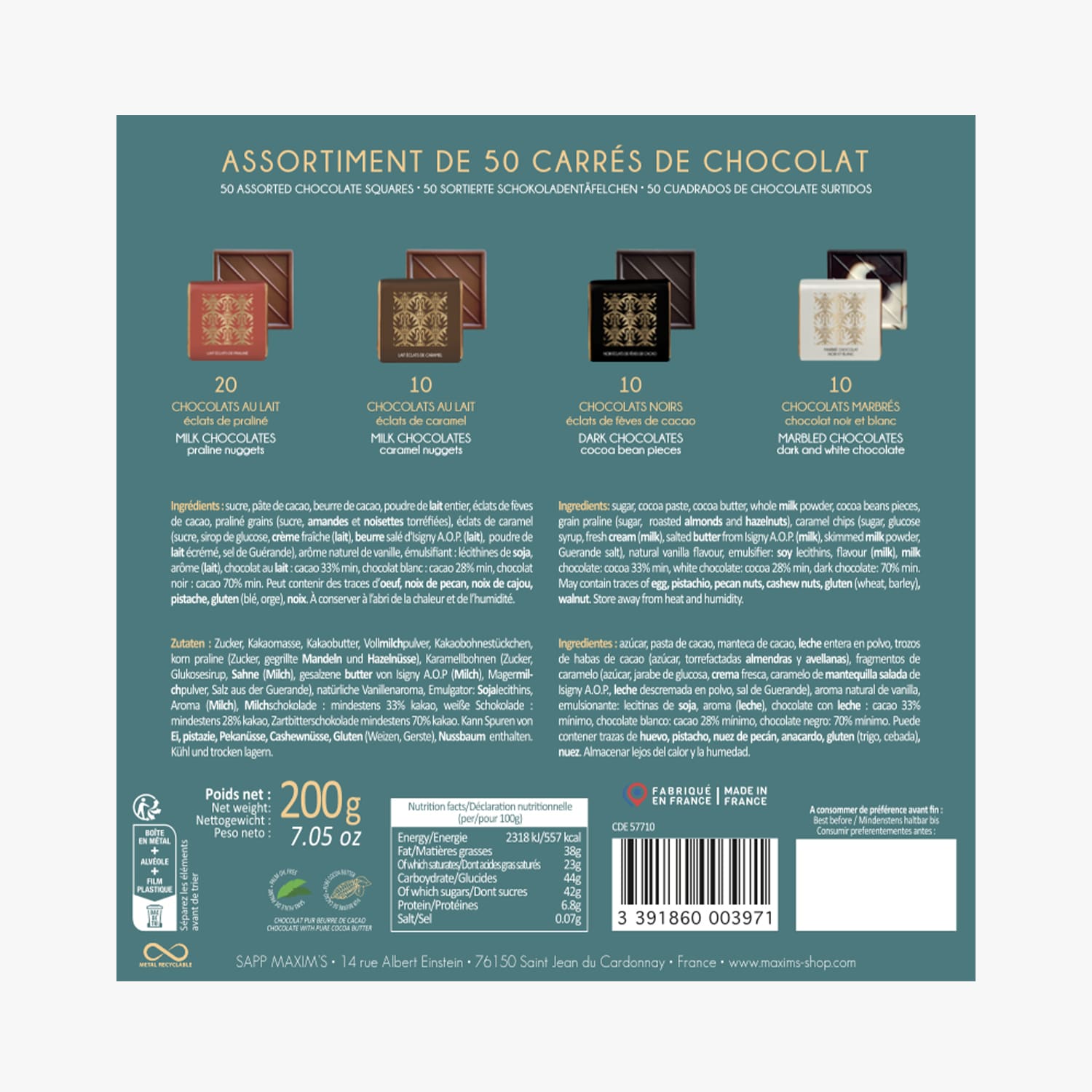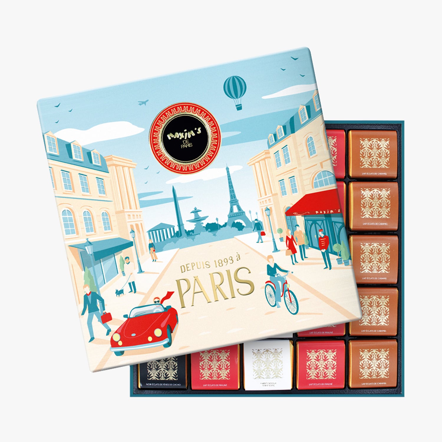 Coffret métal Paris - 50 carrés de chocolat assortis Maxim’s de Paris