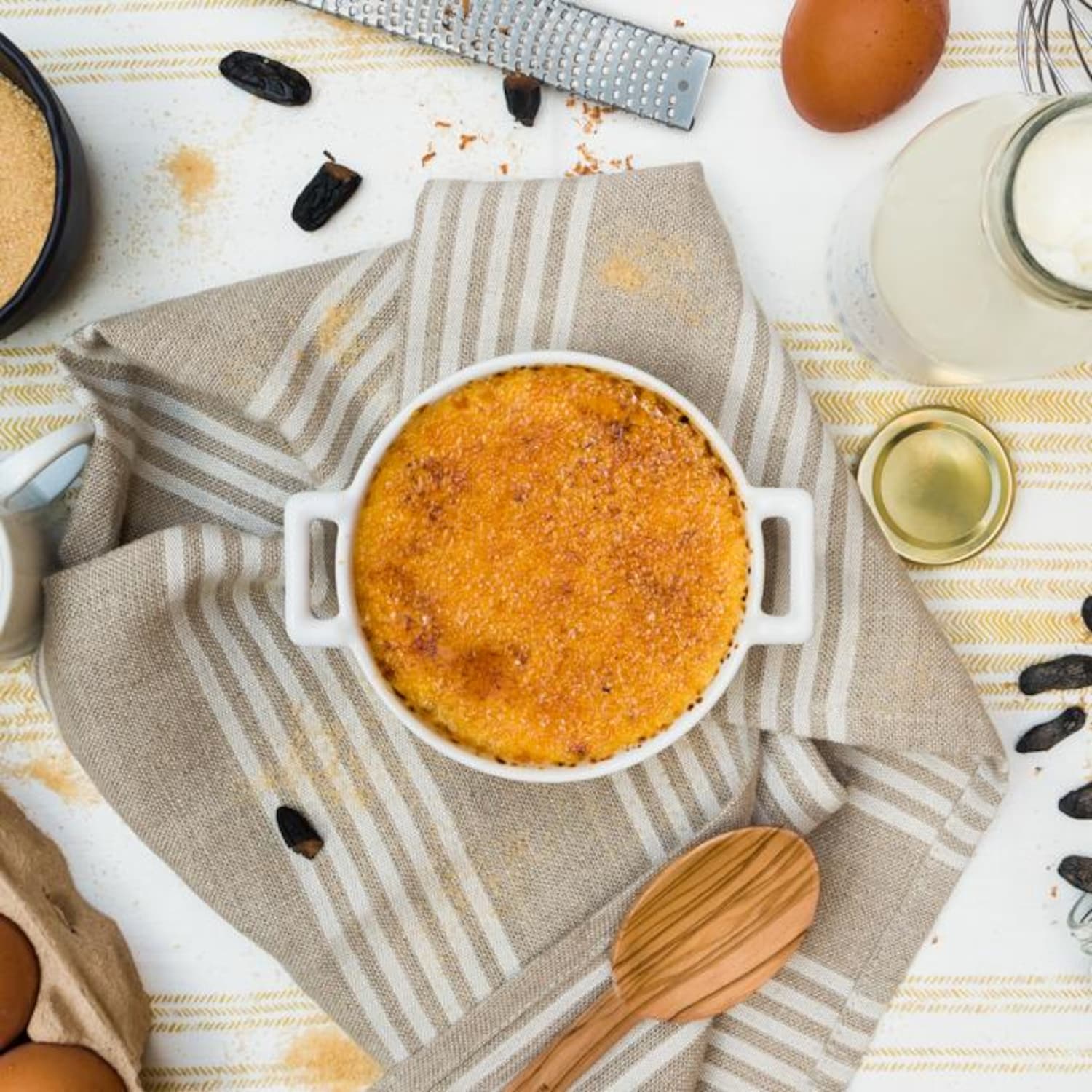 8Laissez refroidir. Ajoutez une pincée de sucre roux sur le dessus puis faites caraméliser au chalumeau.