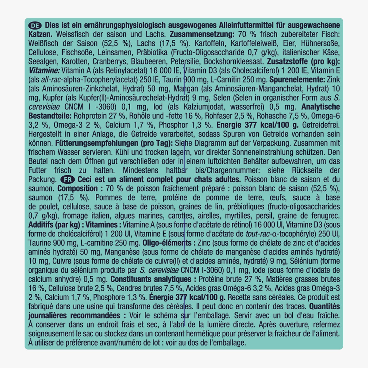 Croquettes pour chat au poisson blanc de saison et au saumon