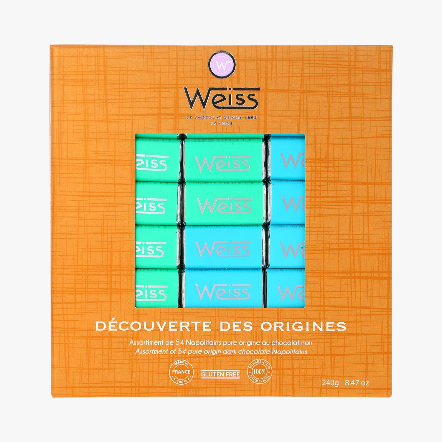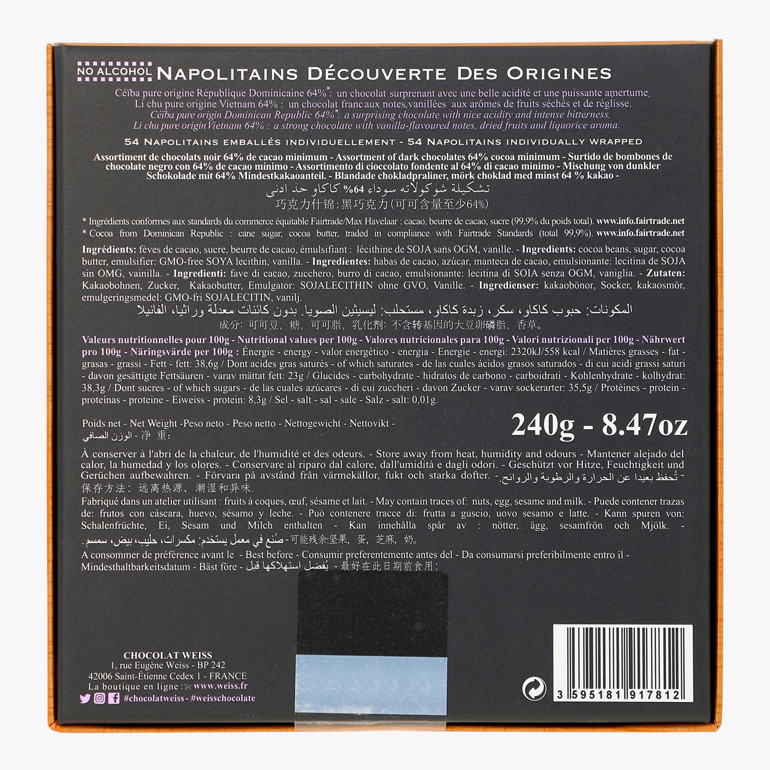Découverte des origines - Assortiment de 54 napolitains pure origine au chocolat noir