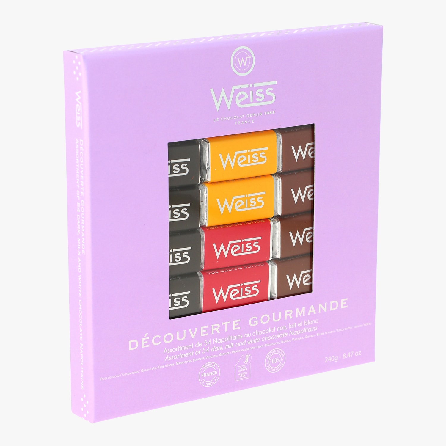 Découverte gourmande - Assortiment de 54 napolitains au chocolat noir, lait et blanc