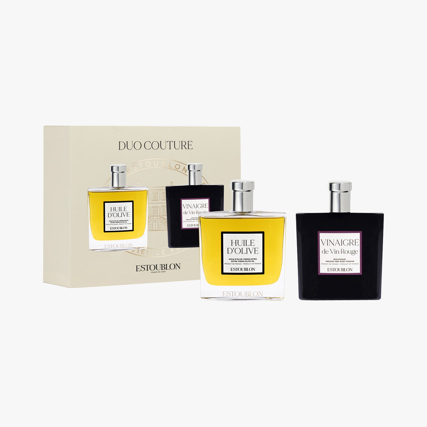 Coffret duo couture d'huile d'olive et de vinaigre de vin rouge