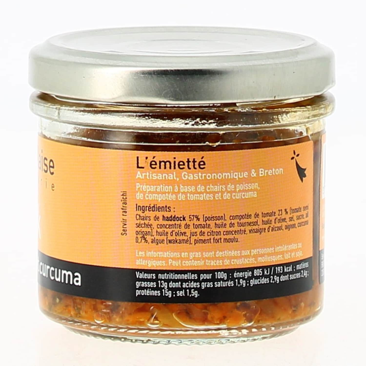 • Émietté haddock, compotée de tomates et curcuma Paimpolaise Conserverie