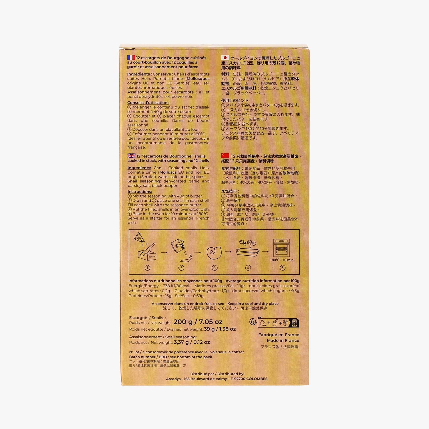 12 escargots de Bourgogne cuisinés au court-bouillon avec 12 coquilles à garnir et assaisonnement pour farce