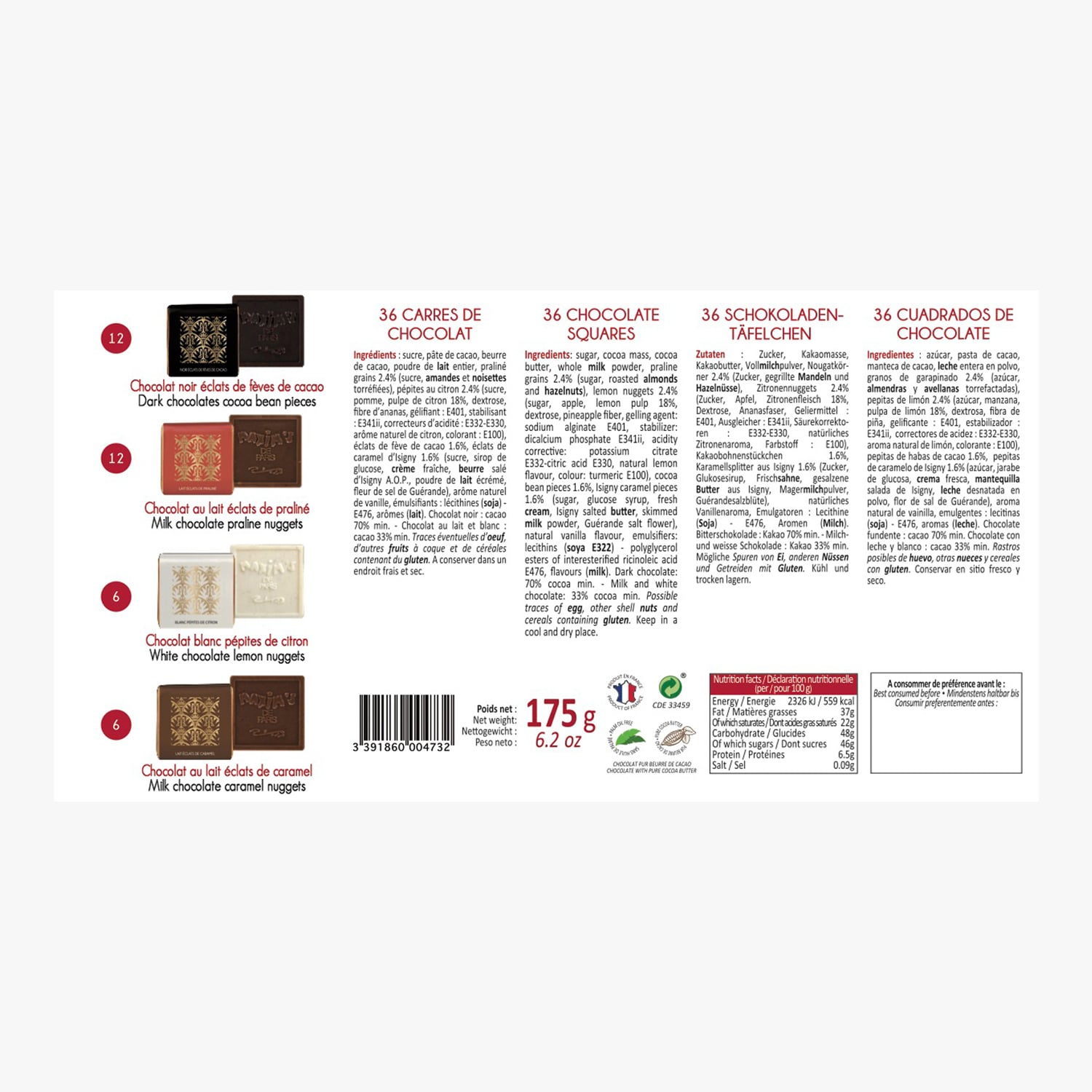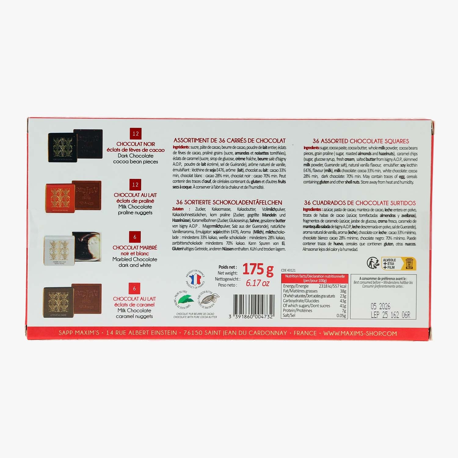 Étui, assortiment de 36 carrés de chocolat Maxim’s de Paris