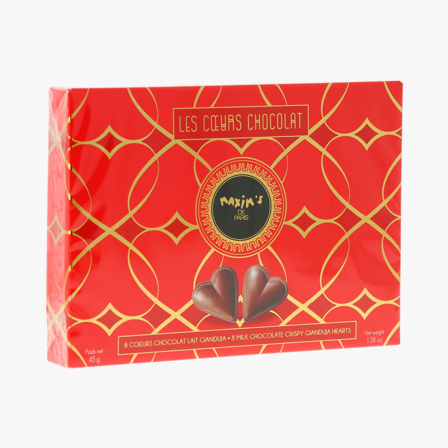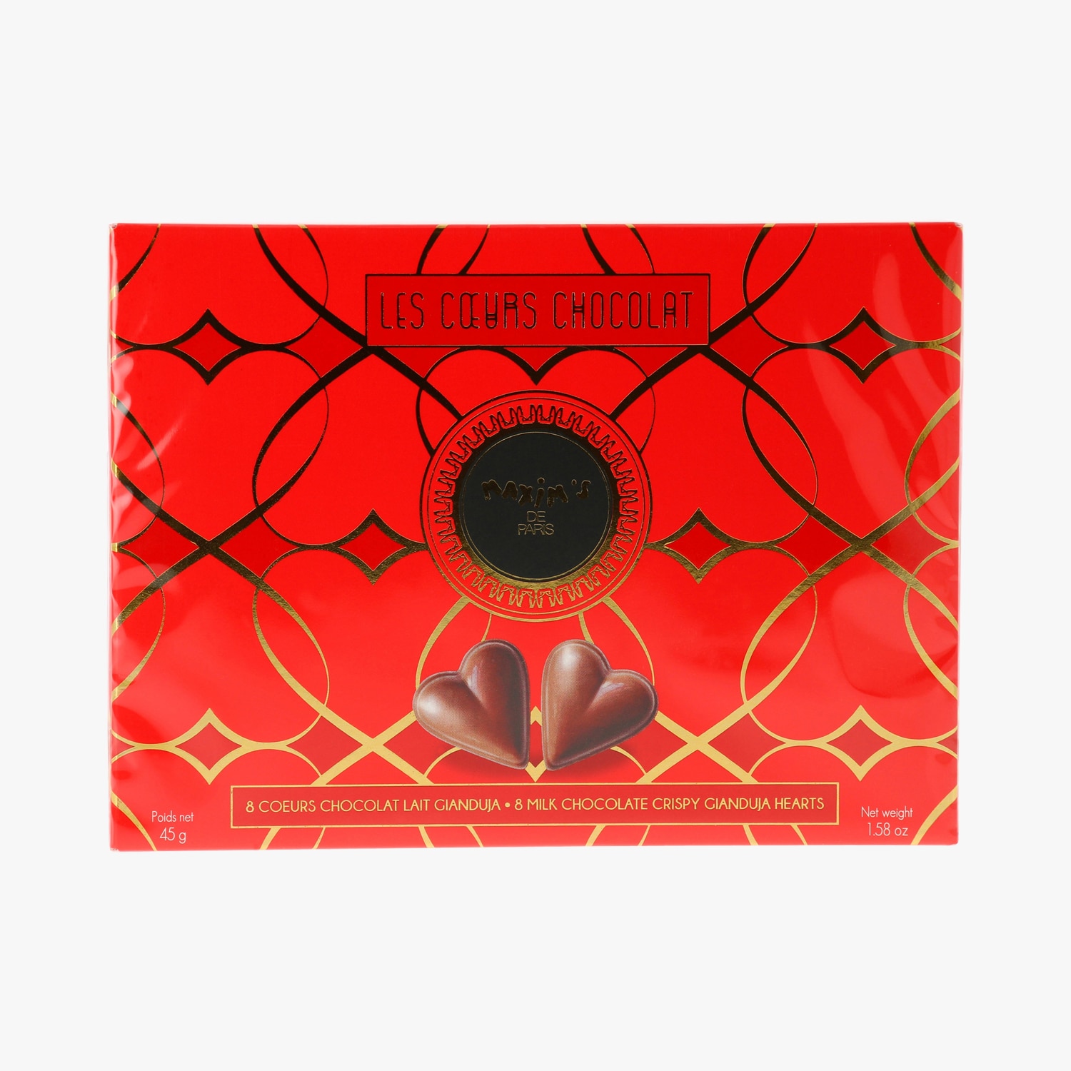 Étui 8 cœurs en chocolat lait gianduja praliné