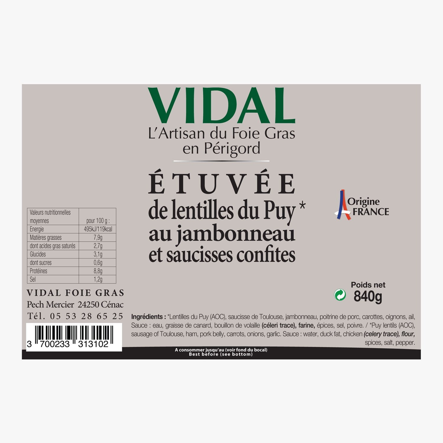 Etuvée de lentilles du Puy au jambonneau et saucisses confites Vidal
