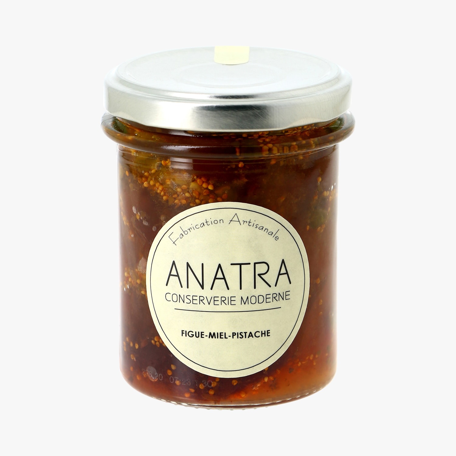 Figue, miel et pistache : voici une alliance gourmande, intrigante et délicieusement savoureuse qui se retrouve dans cette préparation réalisée de manière artisanale à la conserverie Anatra à Furiani en Corse. Un mélange à découvrir !