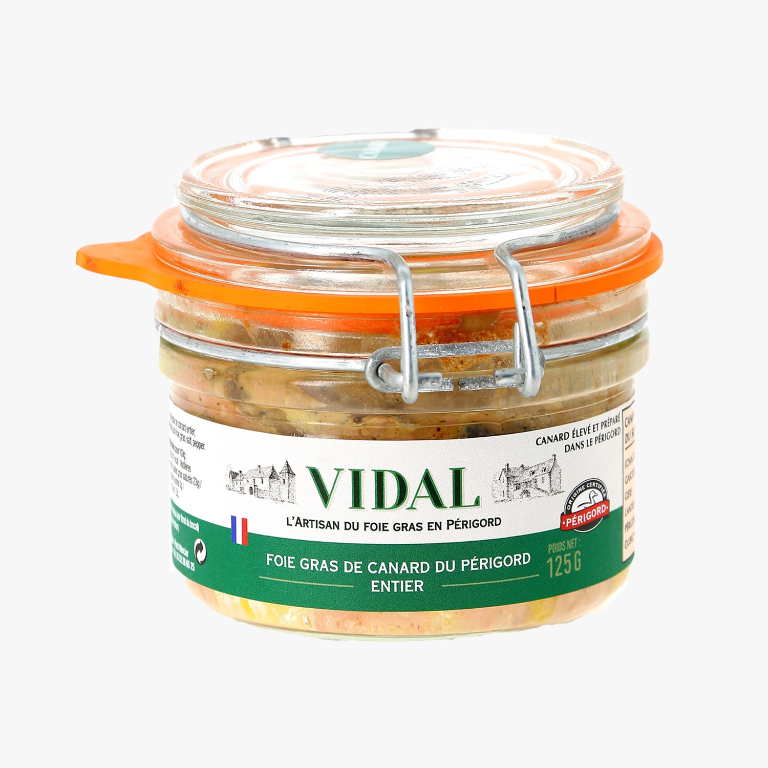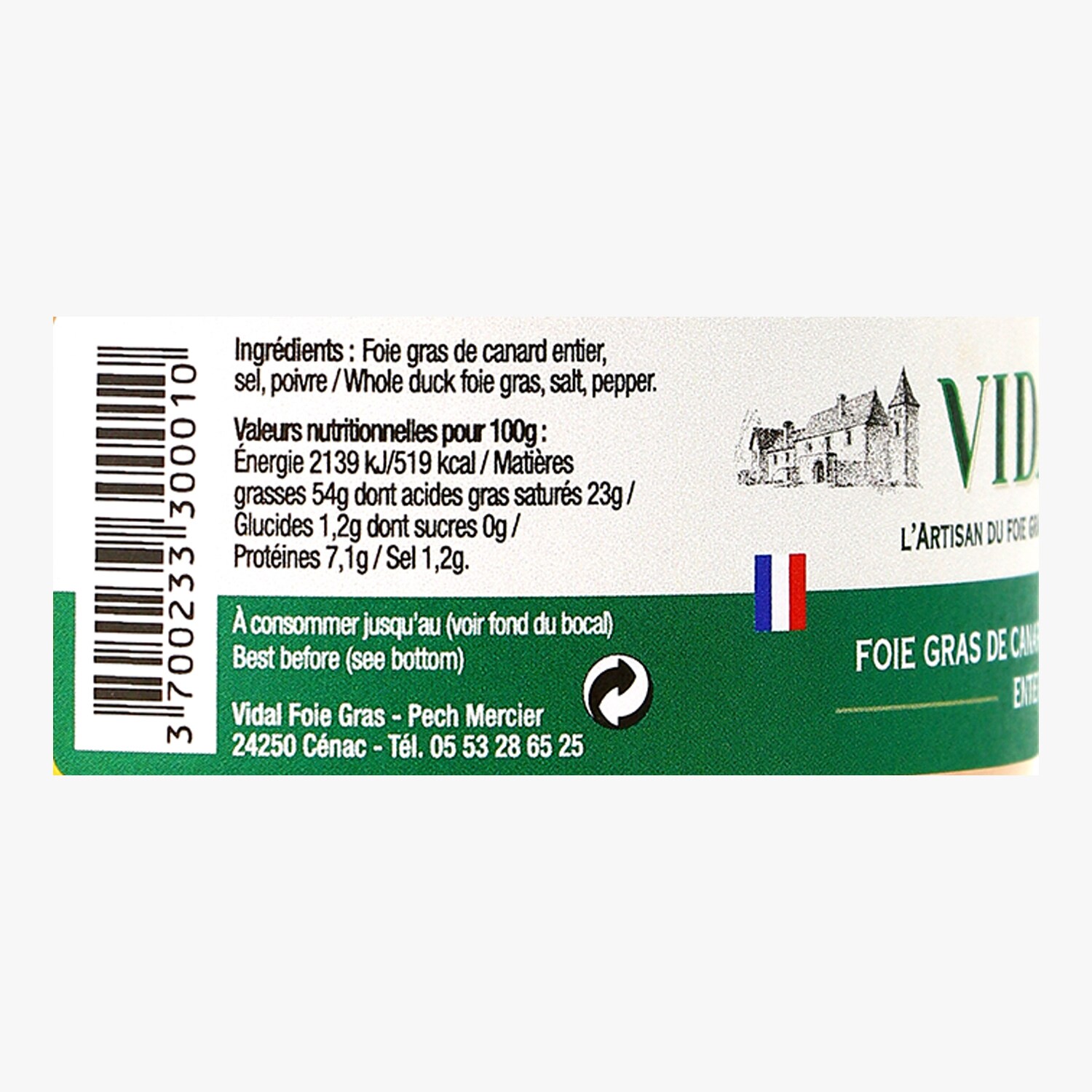 Un bocal de foie gras de canard entier, préparé à partir de Canard à foie gras du Sud-Ouest (Chalosse, Gascogne, Gers, Landes, Périgord, Quercy) IGP. Servi sur des toasts, il sera idéal à l'apéritif.