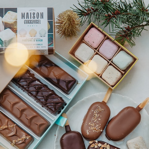 Guimauves de Noël, guimauves au cassis… Le pop-up Maison Carrousel a de quoi ravir nos plus fins amateurs de confiseries ! L’occasion d’y découvrir un parfum exclusif : peut-être vous laisserez-vous tenter par sa guimauve vanille éclats de caramel ? Accompagnez votre dégustation d’un délicieux chocolat chaud, d’un café ou d’un thé, disponibles à l’extérieur du magasin : la recette idéale pour une pause gourmande réussie. Les guimauves Maison Carrousel feront fondre le cœur des petits et des grands !