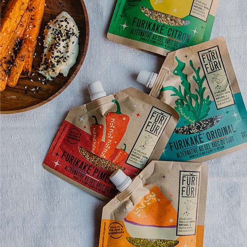 Comme une grande majorité des Français pendant le confinement, Natsuko a passé énormément de temps à cuisiner pour sa famille. Elle prend alors conscience que les furikakés, condiments japonais, qu’elle utilise dans sa cuisine et dont ses filles raffolent, sont pleins d’additifs nocifs pour la santé. Encore très peu connu dans la cuisine française, le furikaké est un condiment que tous les Japonais adorent et qu’ils viennent saupoudrer sur chacun de leurs plats. Il représente une excellente alternative au sel car il est composé majoritairement d’algues, l’aliment du futur ! L’algue est non seulement bonne pour la santé mais aussi pour notre planète. Leur culture ne nécessite pas d’apport en eau ni en pesticides ou engrais. Elles participent également grandement à réduire les gaz à effets de serre en absorbant le CO2 et en rejetant de l’oxygène dans l’eau, vital pour l’écosystème marin.