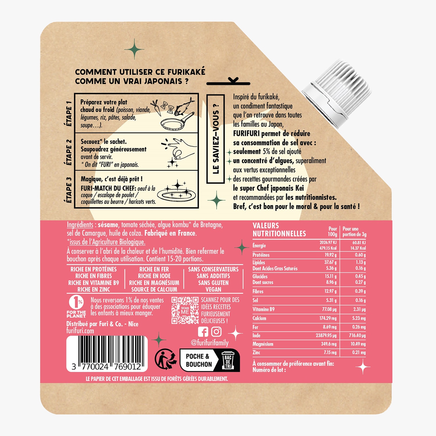 Furikaké tomate, graines de sésame et algues de Bretagne Furifuri