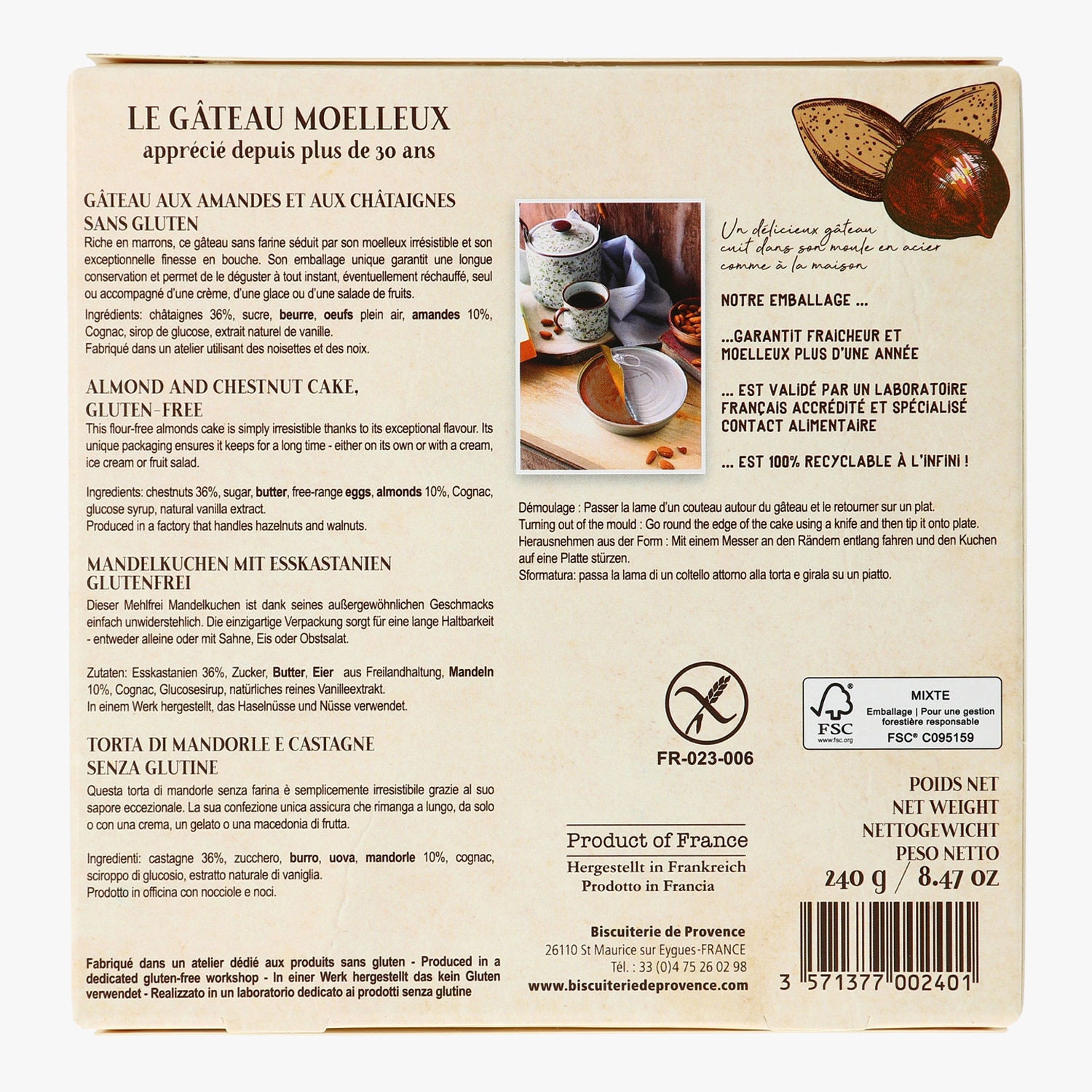 Gâteau aux châtaignes sans gluten Biscuiterie de Provence
