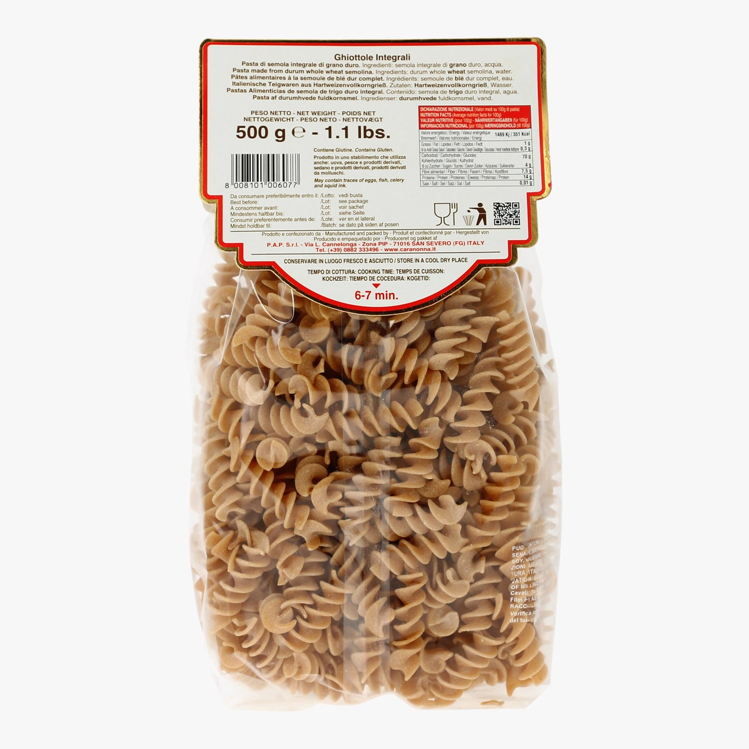 Pâtes alimentaires à la semoule de blé dur complet