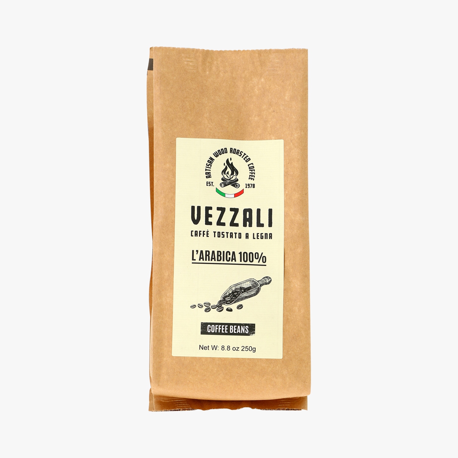 Grains de café torréfiés au feu de bois - 100 % arabica Vezzali