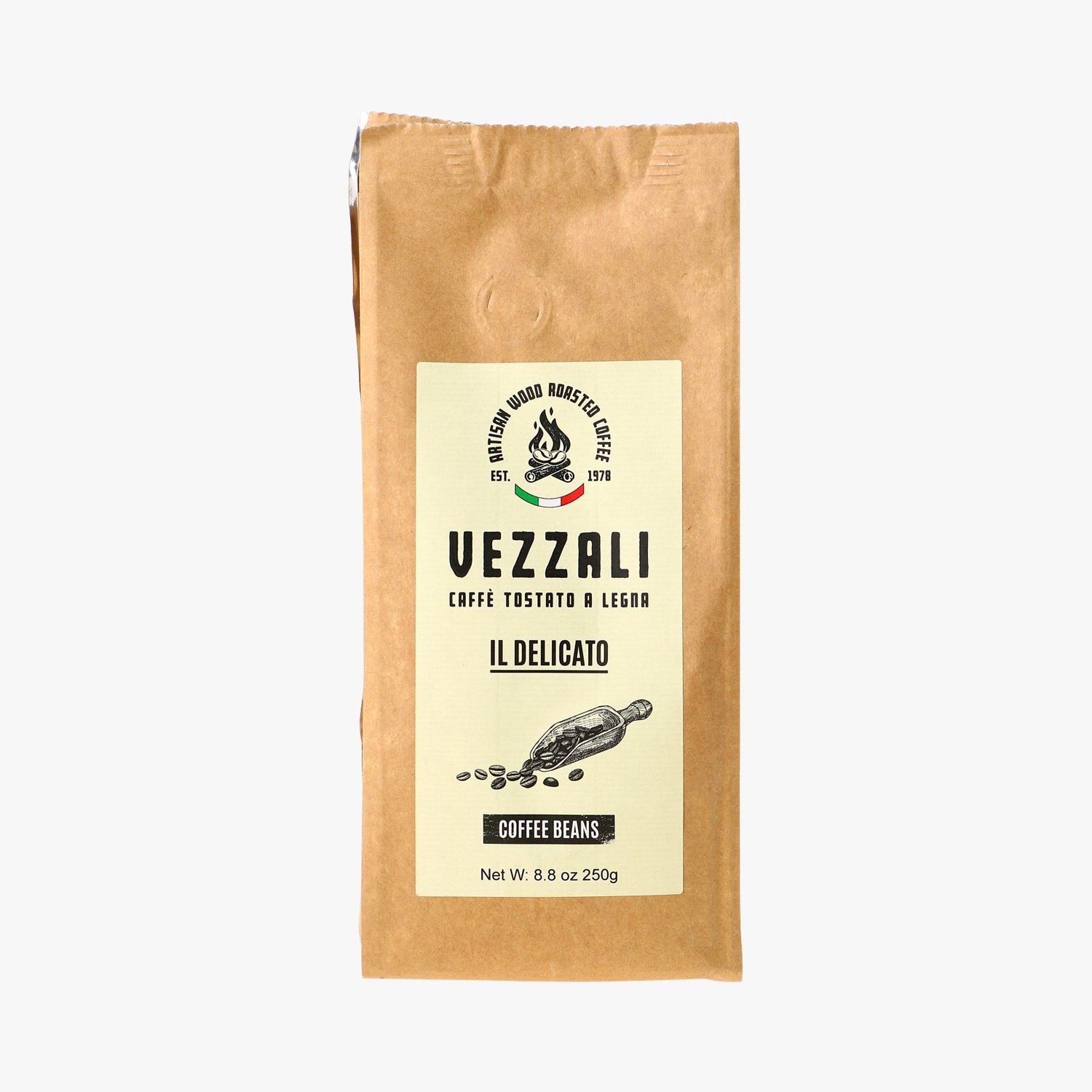 Grains de café torréfiés au feu de bois - Delicato Vezzali