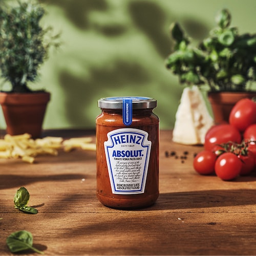Si l’association de la sauce tomate et de la vodka semble plutôt incongrue, elle n’en est pas moins délicieuse ! La vodka mijote longuement avec la crème fraiche pour en réduire sa teneur en alcool. Elle libère et intensifie tous les arômes des pâtes et de la tomate et rend la sauce onctueuse et crémeuse. La sauce tomate Heinz x Absolut est une édition limitée et est disponible en France en avant-première à La Grande Épicerie de Paris !