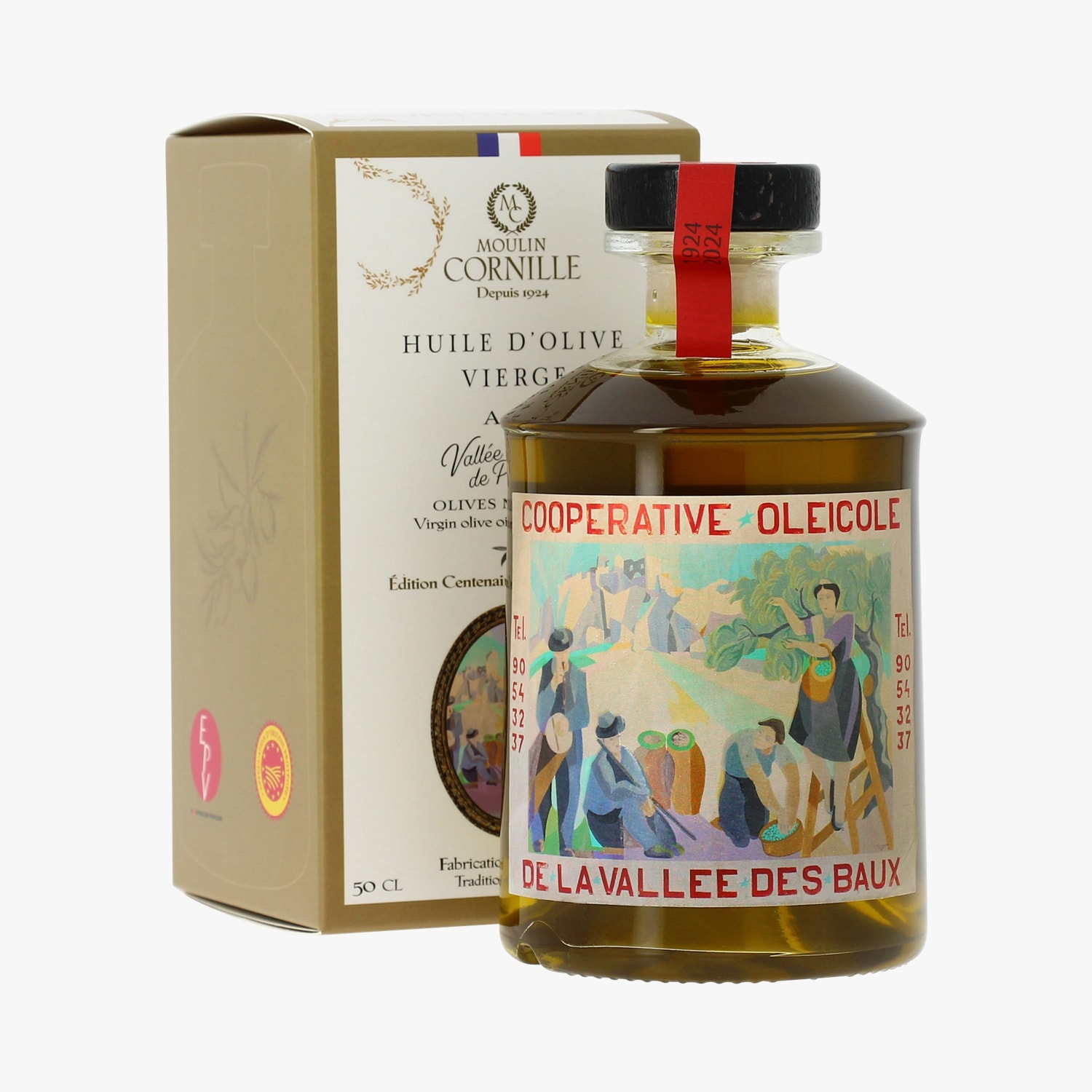 Huile d'olive de la Vallée des Baux-de-Provence AOP flacon étui Édition Centenaire